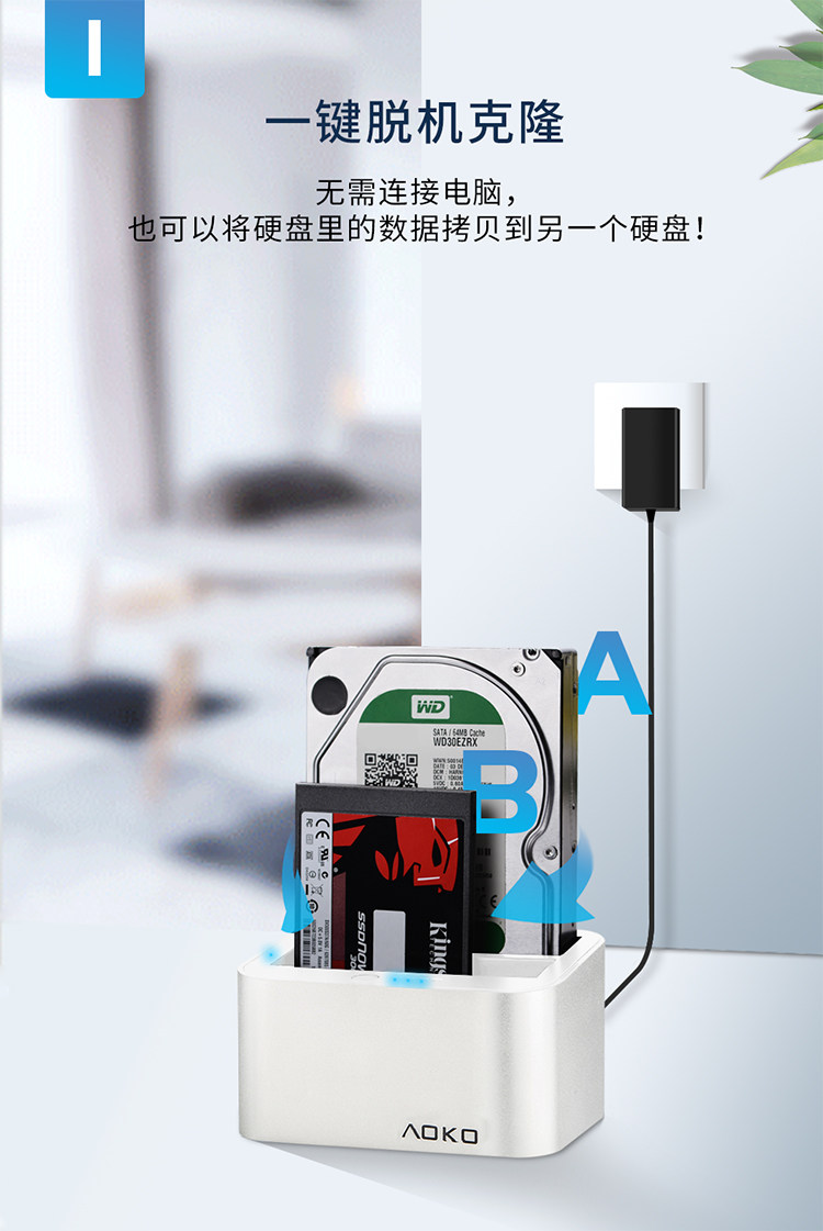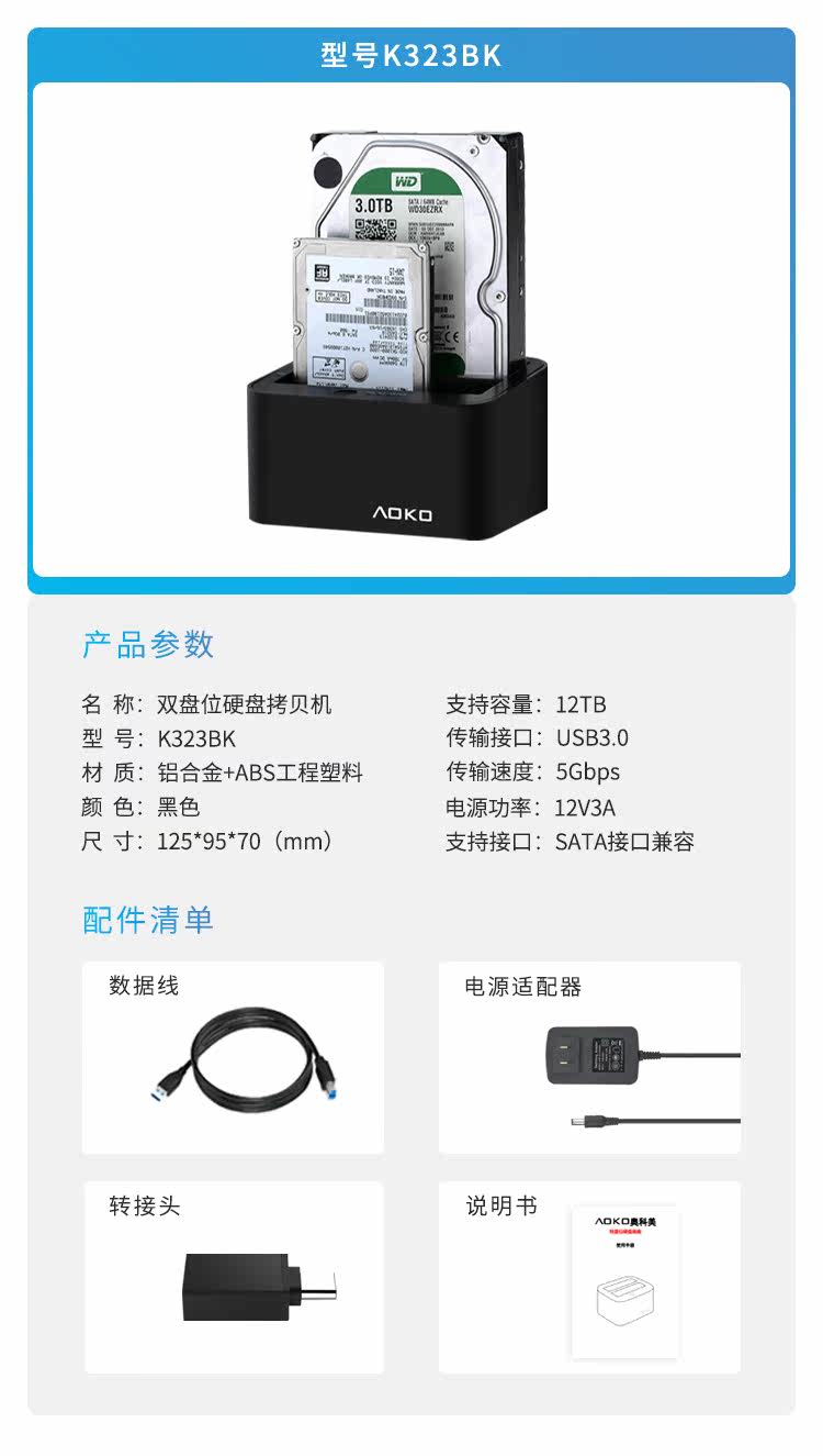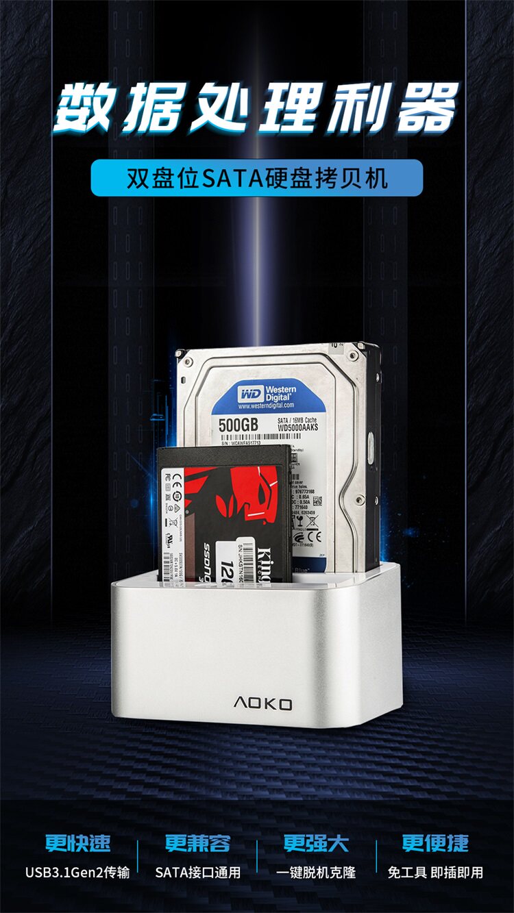 AOKO AOKUMI 3.5 -INCH USB3.1 Двойной жесткий дисковый базовый базовый диск Хард -диск Читать клонирование копирование машины