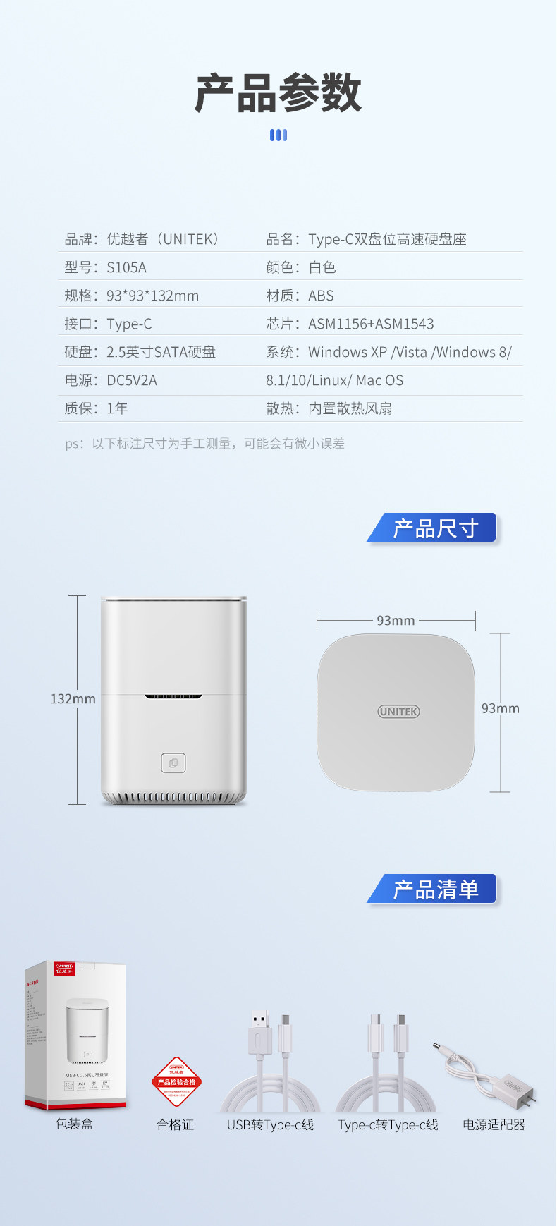 优越者 Тип-C Двойной диск Механический SSD Твердый штат до SATA Universal USB3.0 Внешний жесткий диск.
