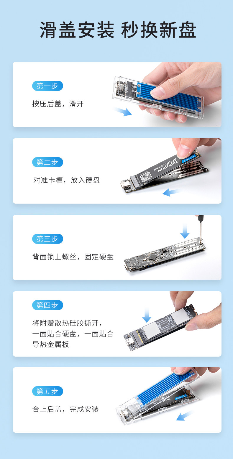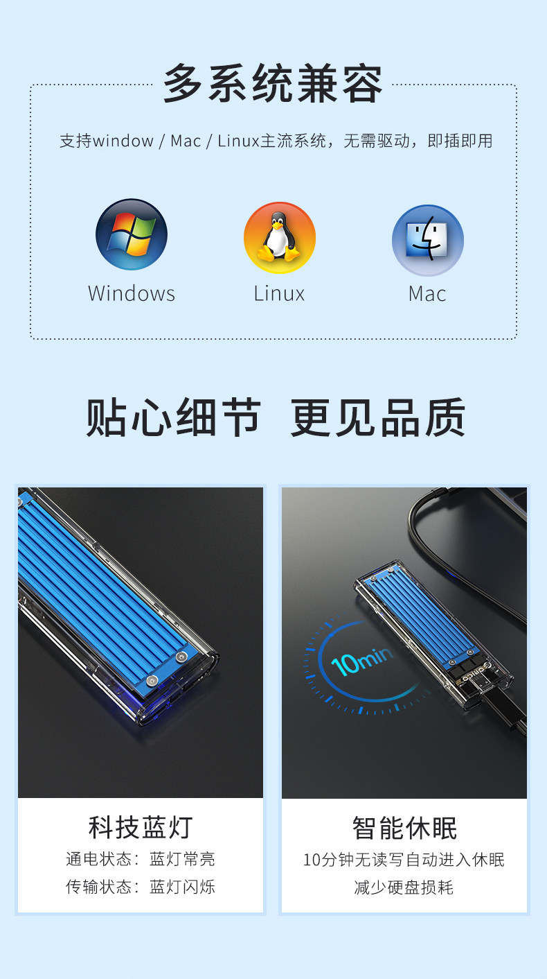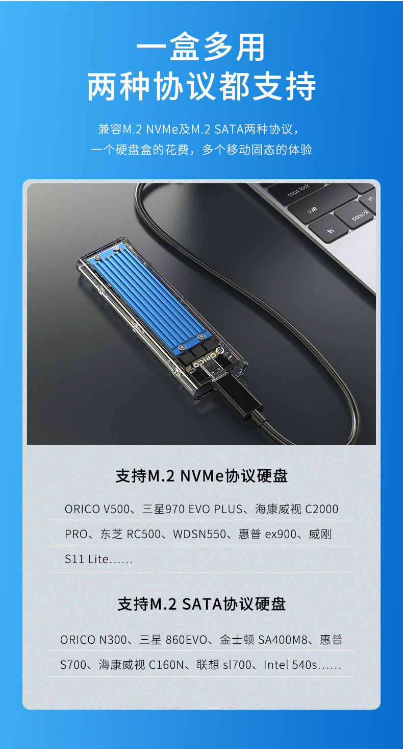 | Цвет: | NVME/NGFF Двойной протокол-прозрачный синий |