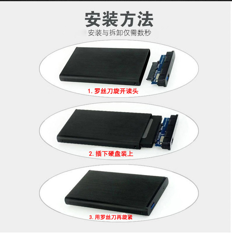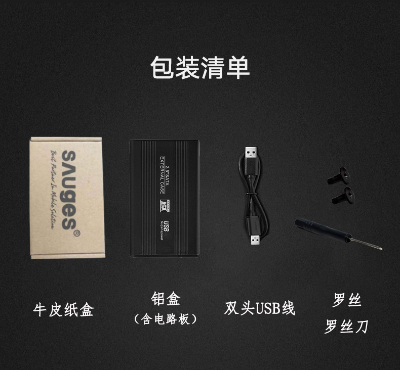 Metal Mobile Hard Disk Box USB2.0 Внешний 2,5 -дюймовый двойной кабель передачи данных SSD SOLSTATE SATA Universal