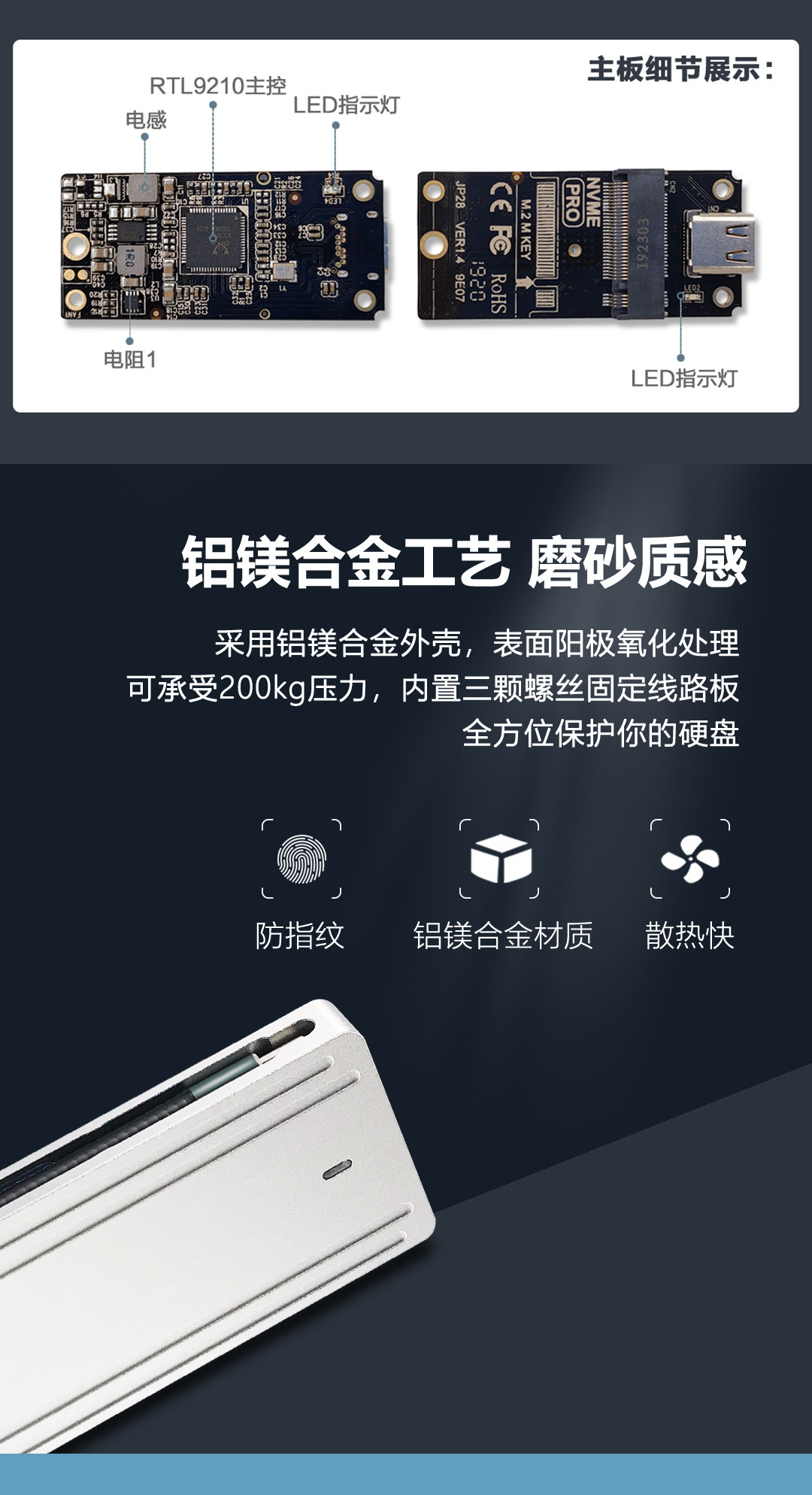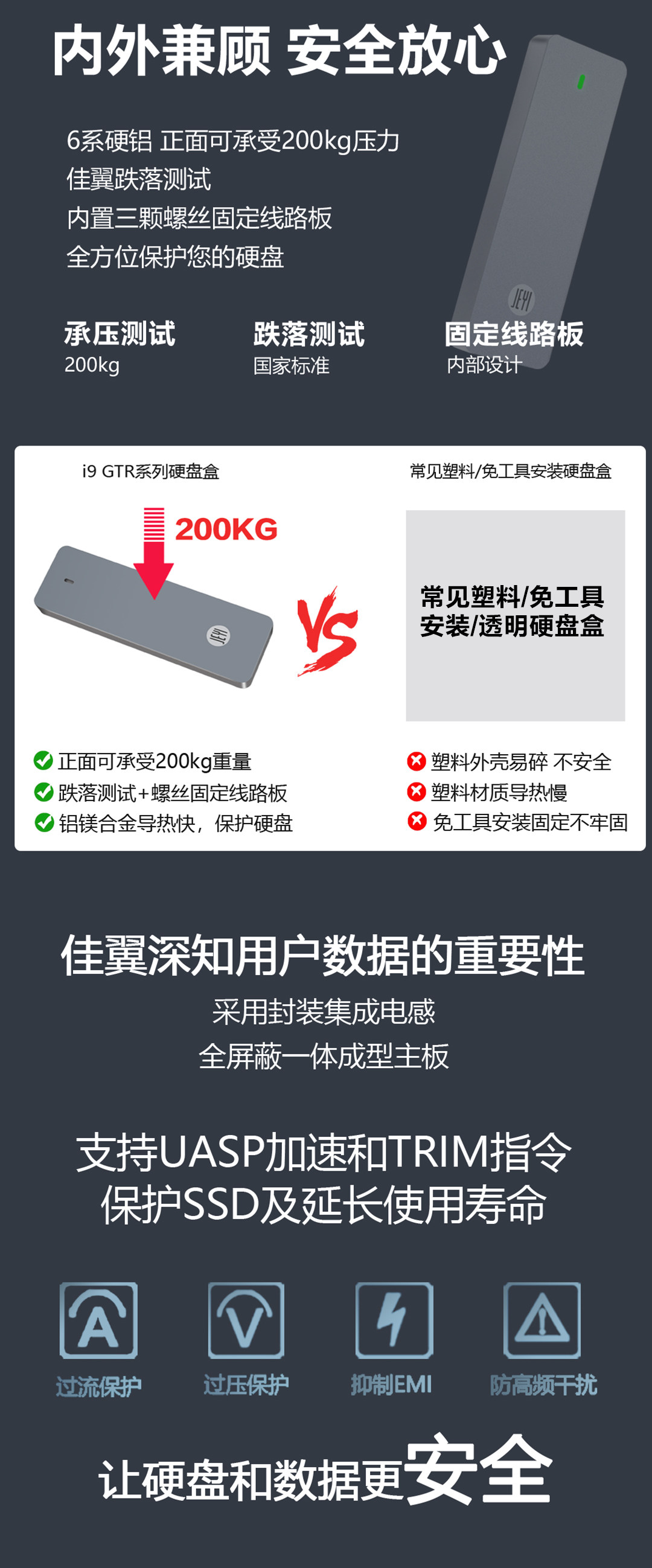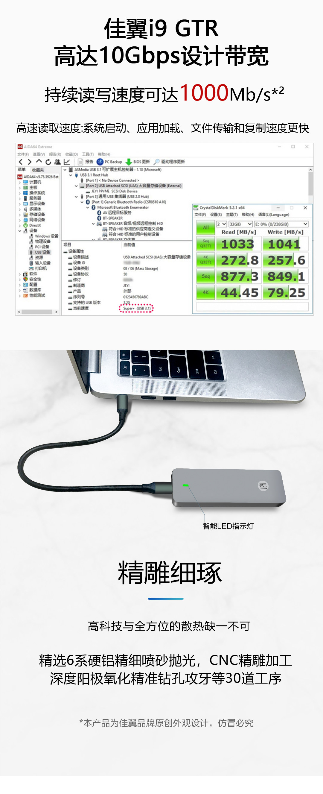 Jiayi i9-gtr nvme mobile жесткий диск коробка All Aluminum type C USB3.1 Gen2 10G RTL9210