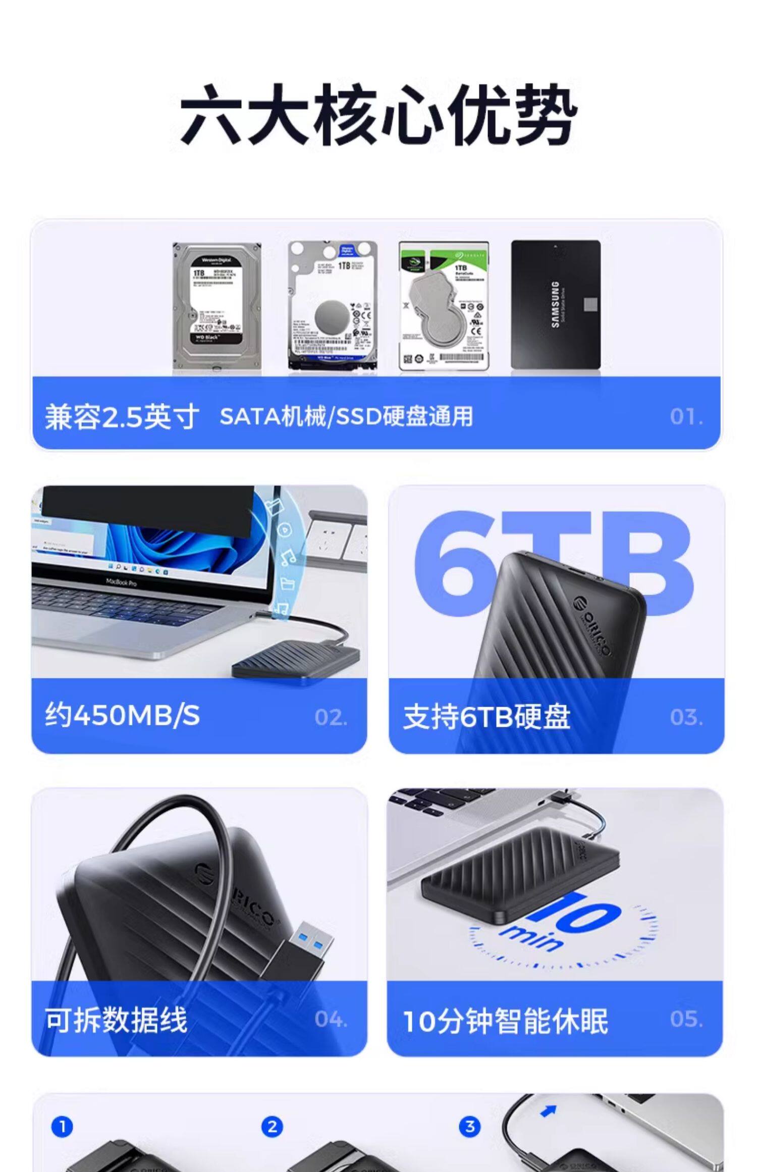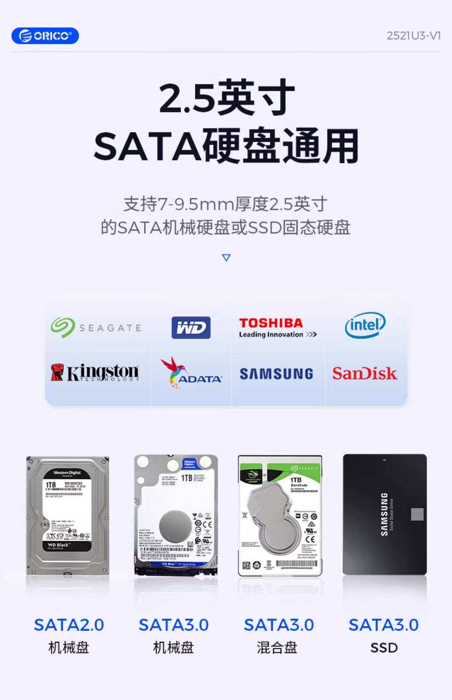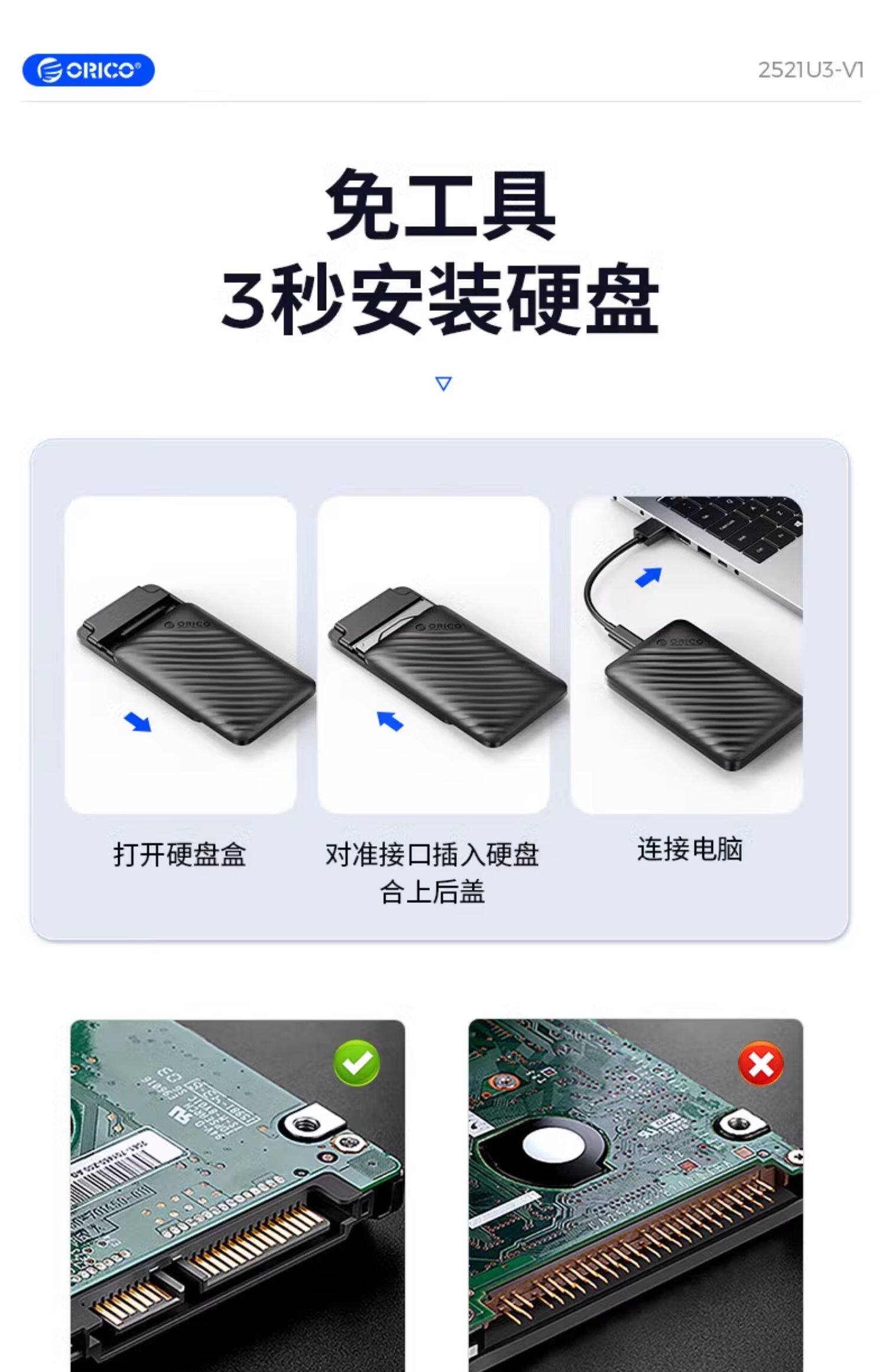 ORICO/ORRI и перемещение твердой дисковой коробки 2.5 -INCH SATA SSD МЕХАНИЧЕСКИЙ Универсальный Внешний Ящик для чтения