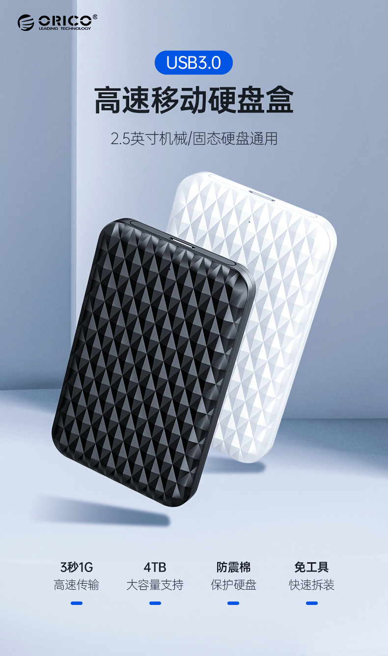 Orico/奥睿科 2.5 -INCH Mobile Hard Disk Box USB3.0 Внешняя коробка Механическая модификация жесткого диска -это настольный компьютер Computer Solid SSD Hard Disk Box Universal Внешний жесткий диск защитный оболоч