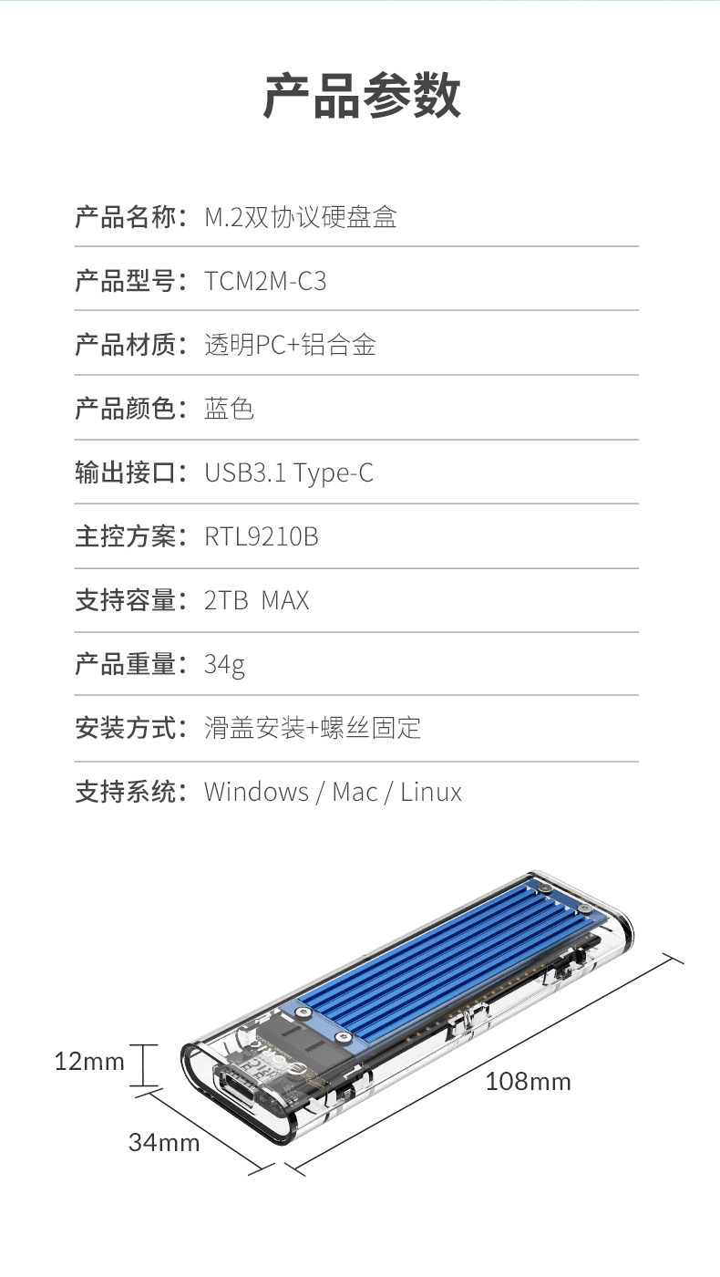 Orico Orre M.2 Hard Disk Box NGFF/NVME Двойной протокол Универсальный внешний ноутбук жесткий диск твердый SSD модифицированный прозрачный мобильный ящик с жестким диском
