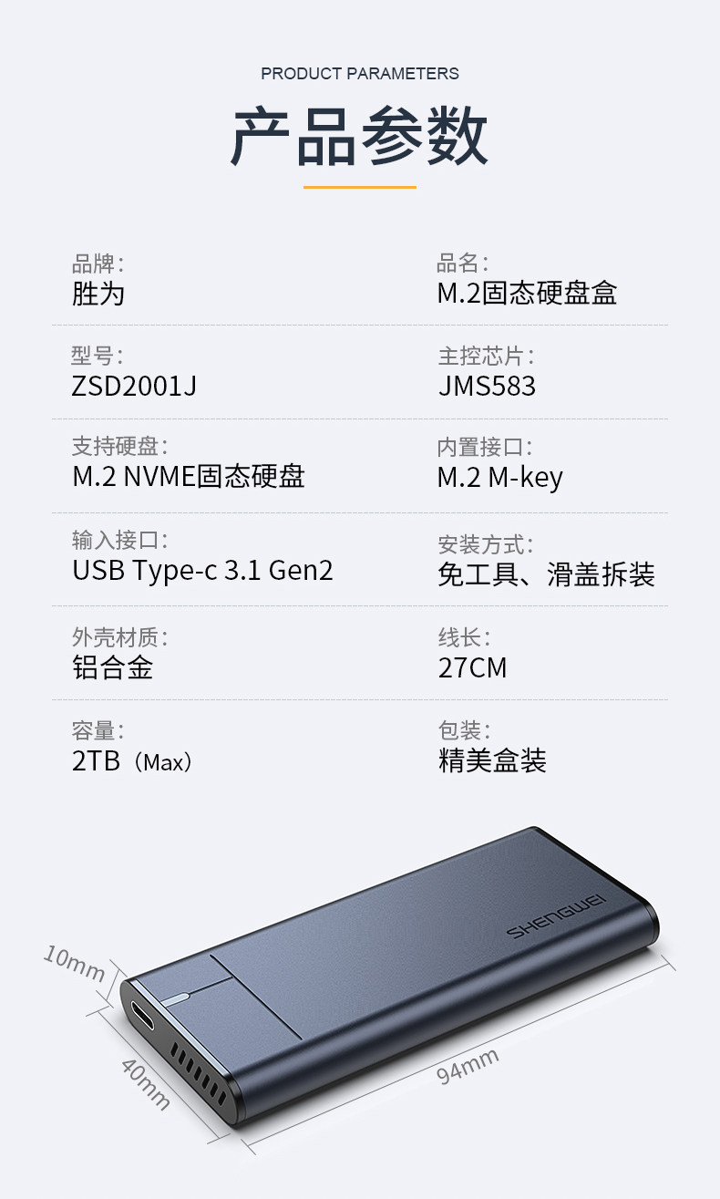 胜为 Мобильный жесткий диск коробка M.2 NVME PCIE3.0 Solid -state SSD Notebook Внешний защитный чехол