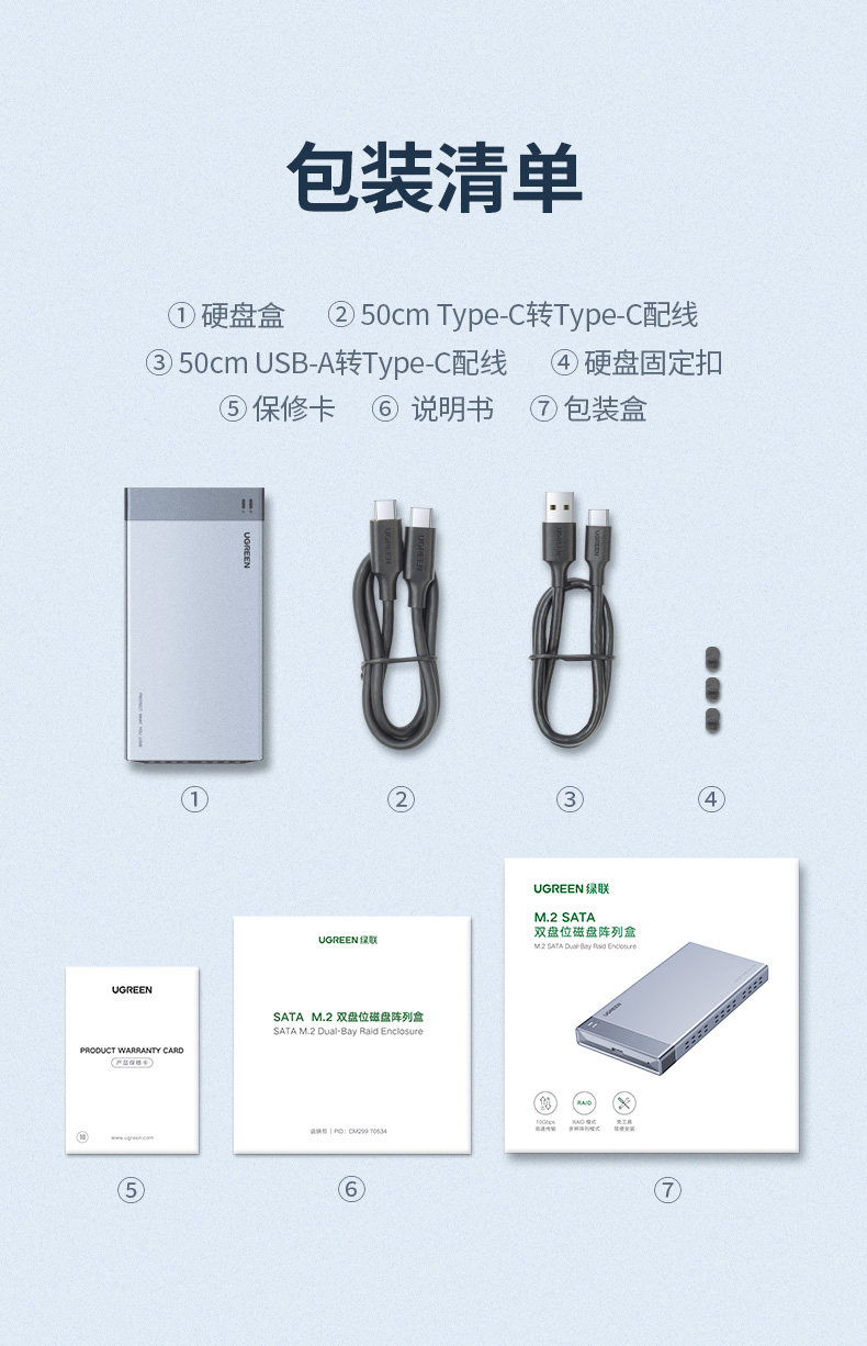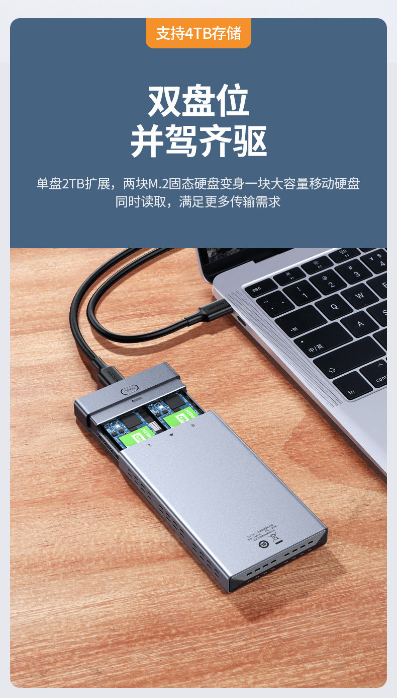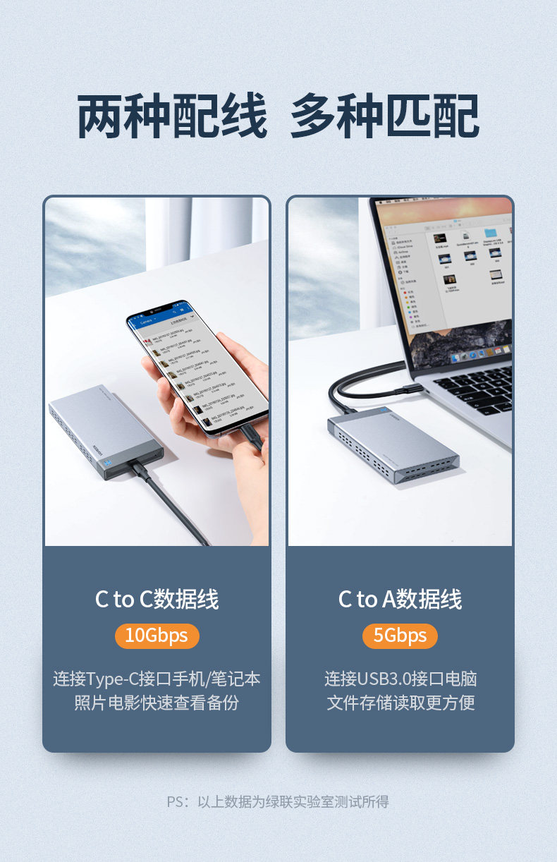 绿联 M.2 Solid -state Hard Disk Box Multi -Dual Disk USB3.0/Typec to SATA Lightning 3 -й исчезной диск массив