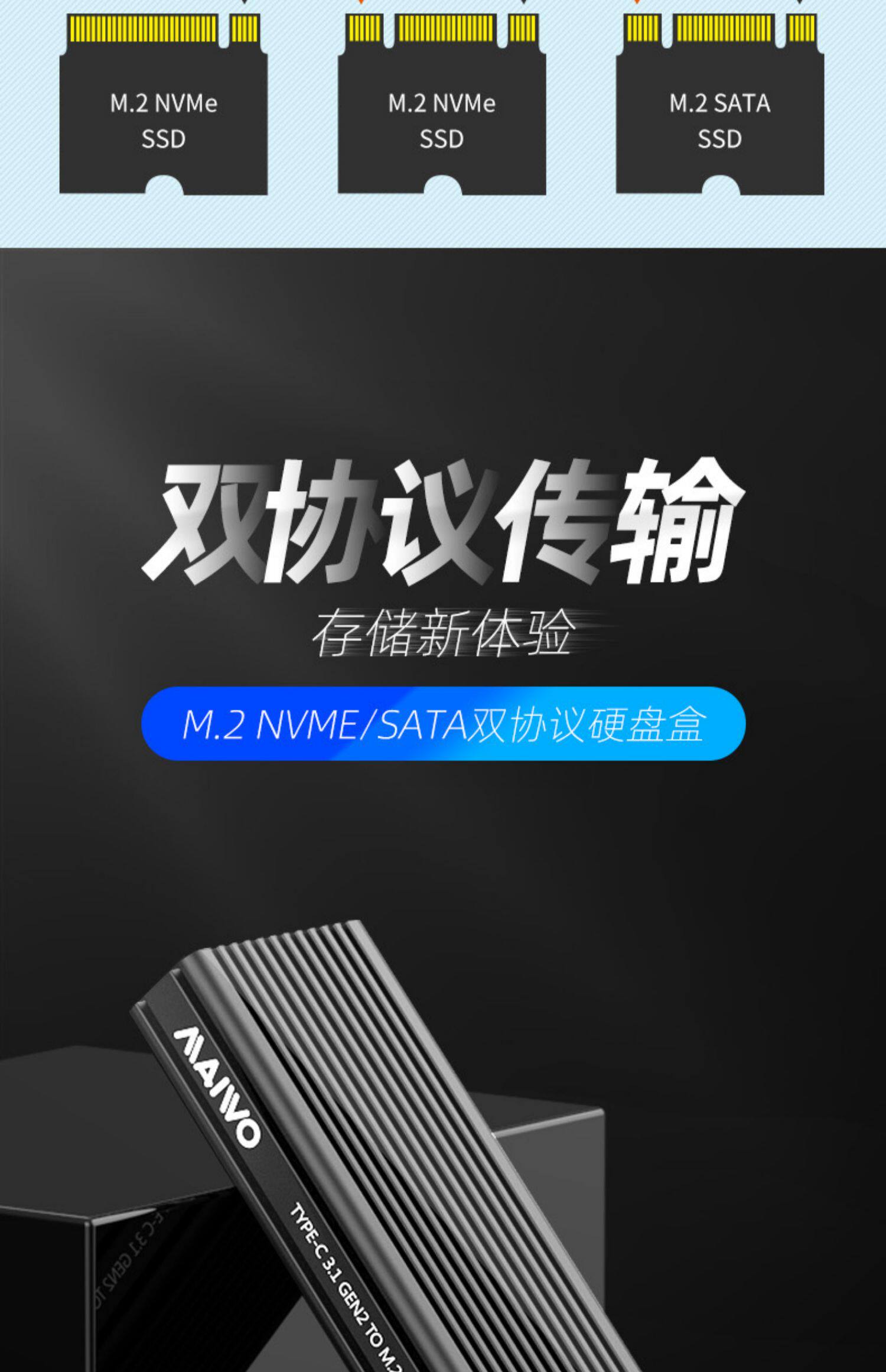 Maiwo Hard Disk Box M.2 NVME Двойной протокол SSD Solid SATA Внешняя коробка PCIE Reader K1687P2