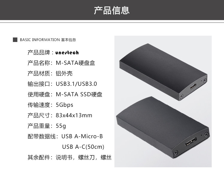 Unstech Msata to USB3.1/USB3.0 Интерфейс твердотельный мобильный жесткий диск коробку MSATA SSD Внешнее ящик