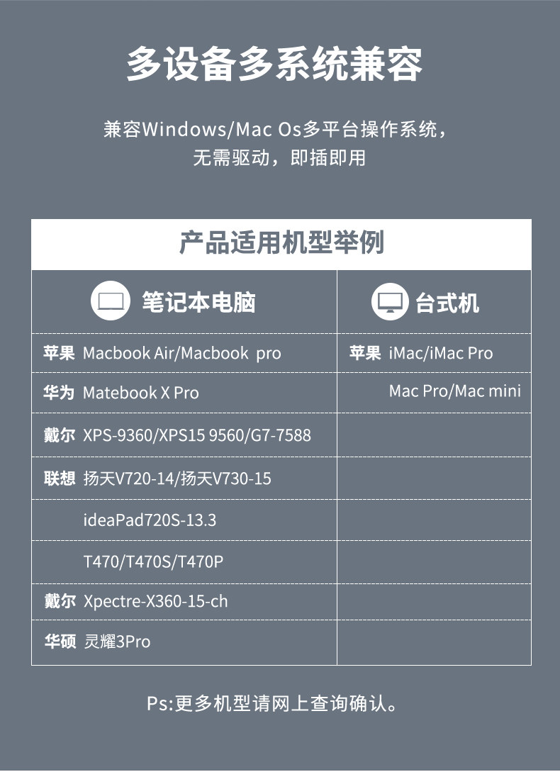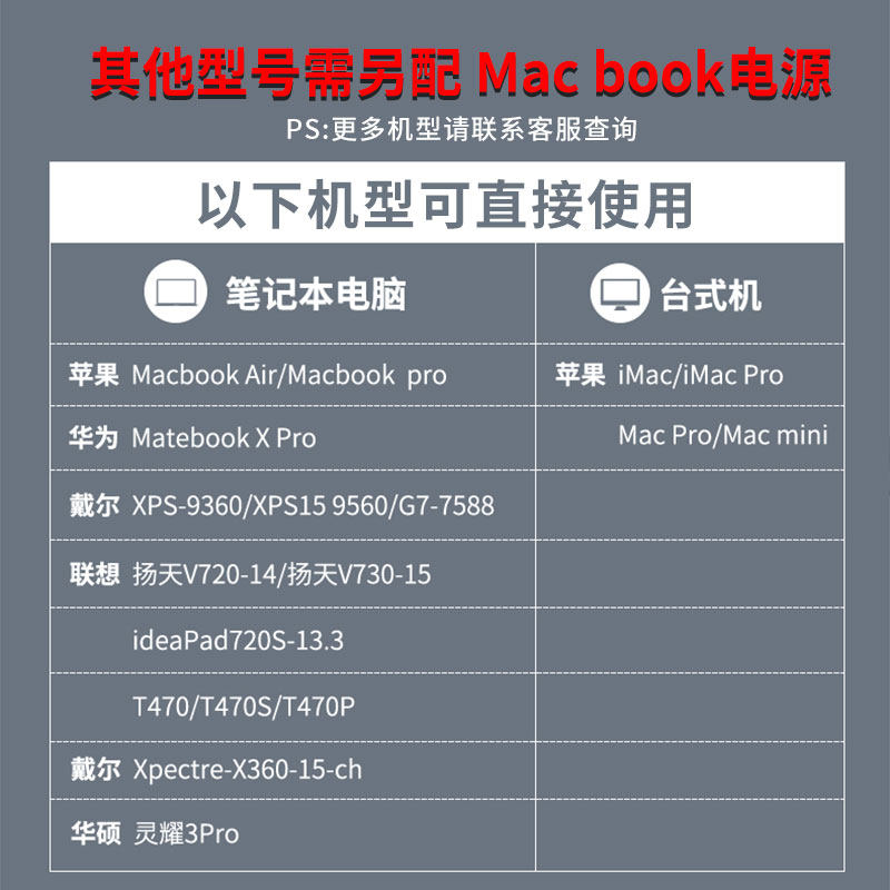 - Thunderbolt 7mini+65W Независимый энергоснабжение (другие бренды консультируются с запросом обслуживания клиентов)