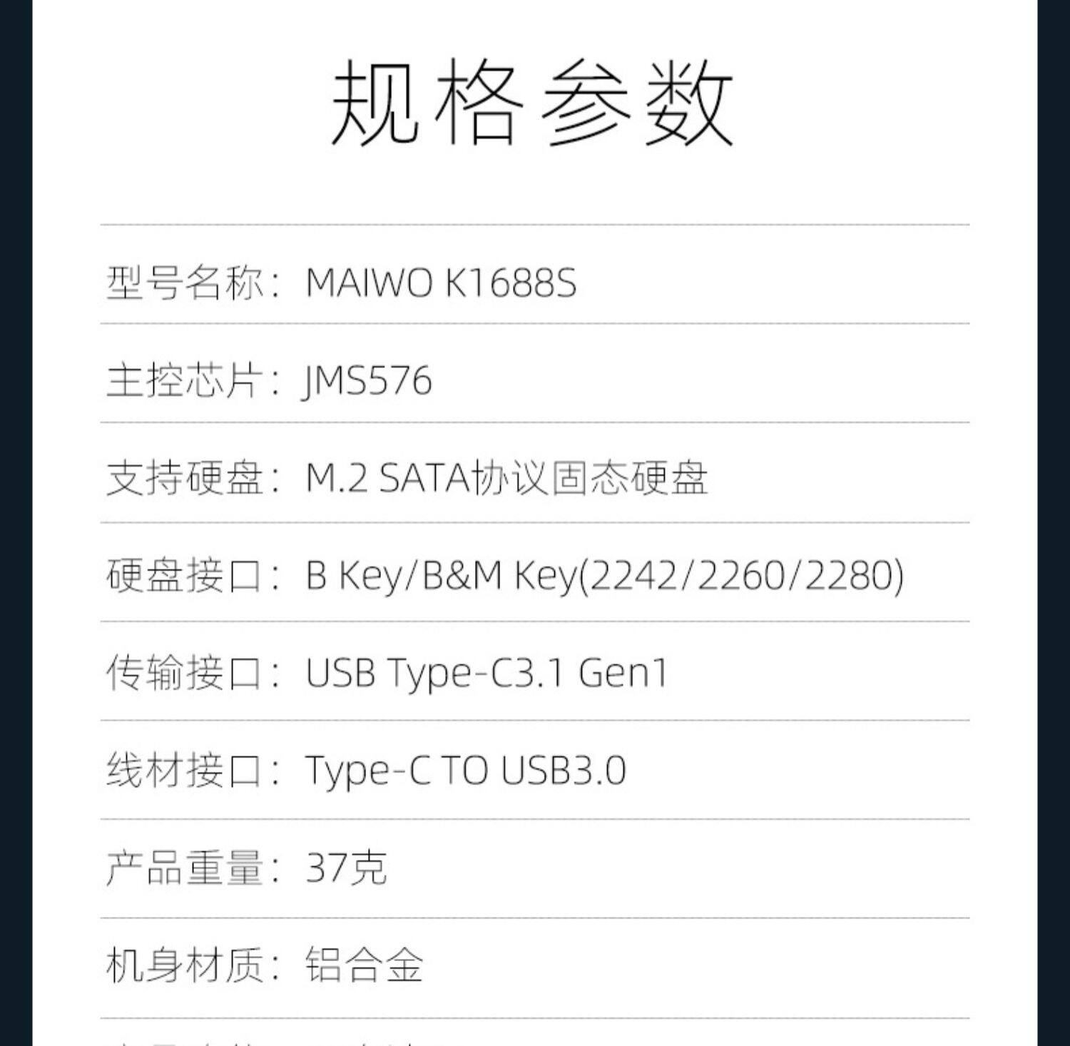 Maiwo Mobile Hard Disk Box M.2 SATA/NMVE Protocol Naptop SSD Сплошная внешняя коробка Читать K1688