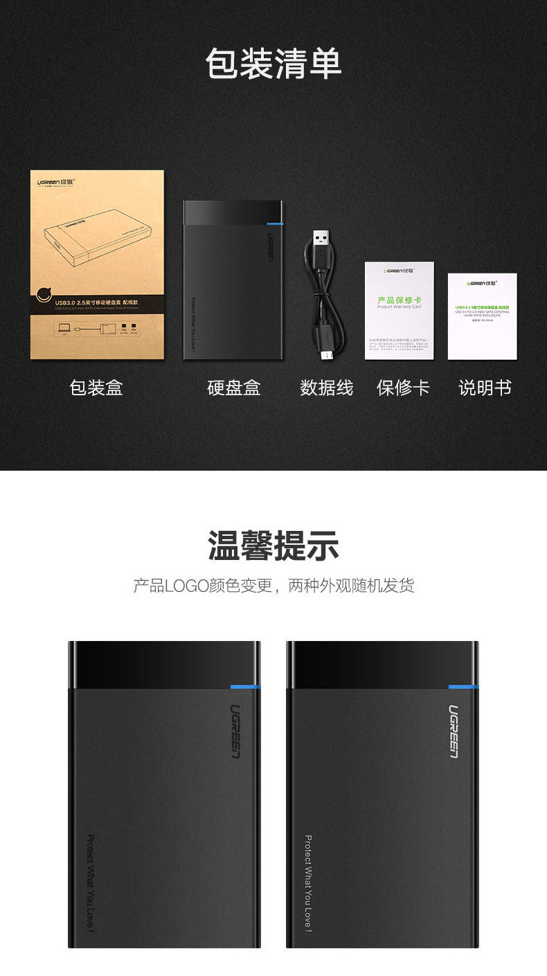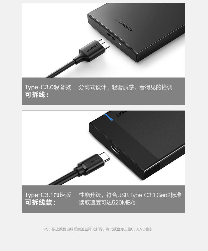 绿联 Мобильный ящик с жестким диском 2,5-дюймовый USB3.0/Type-C3.1 компьютер SSD Внешнее ящик для жесткого диска