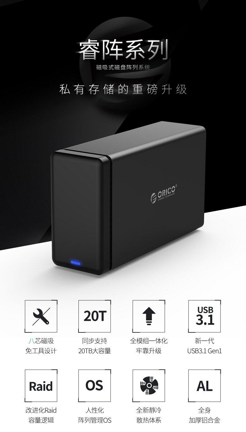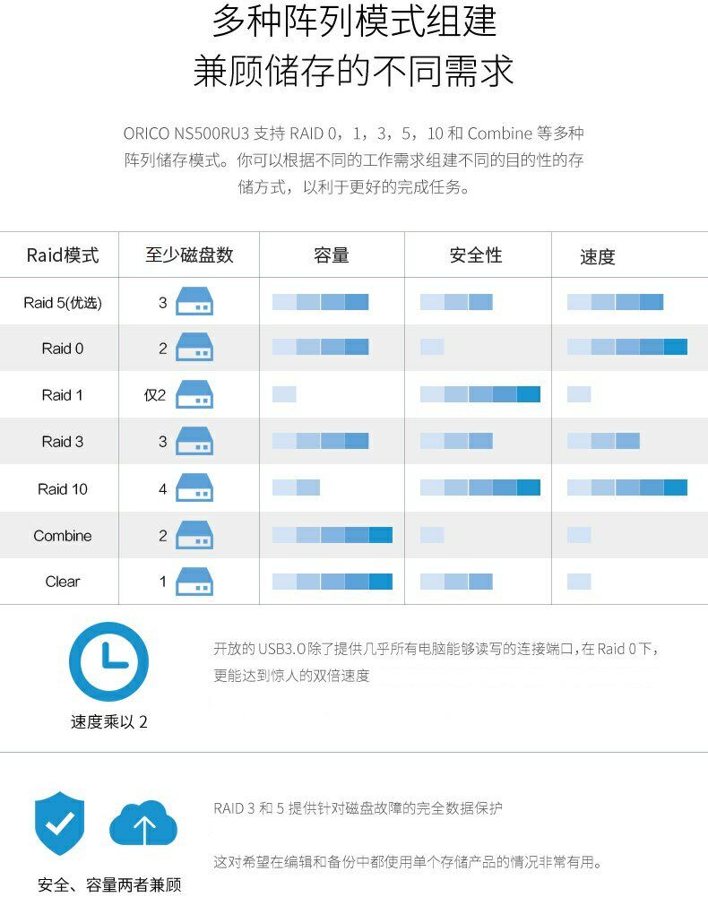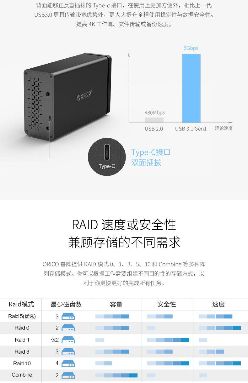 ORICO NS500RC3 Много -диск хард -дискового шкафа хранения дисков 3,5 -дюймового механического SSD с твердым чтением SATA Внешнее жесткое диск Внешнее ящик USB3.0