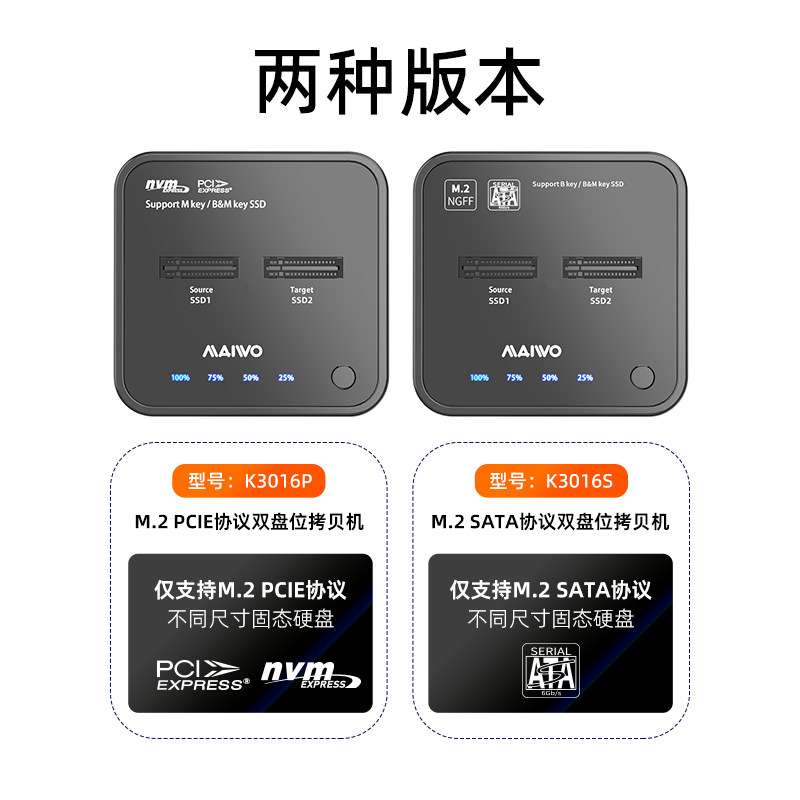 Maiwo Solid -state Hard Disk Machine Machine Двойной диск SATA/NVME Протокол Читать и писать клонированную внешнюю коробку для пикапа K3016