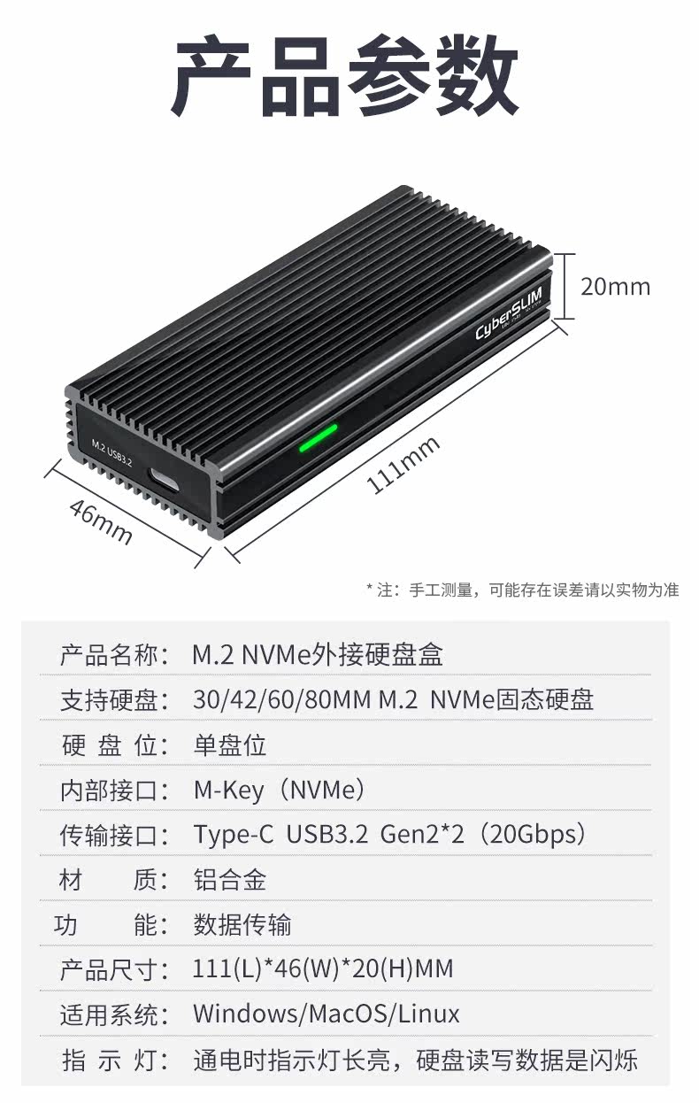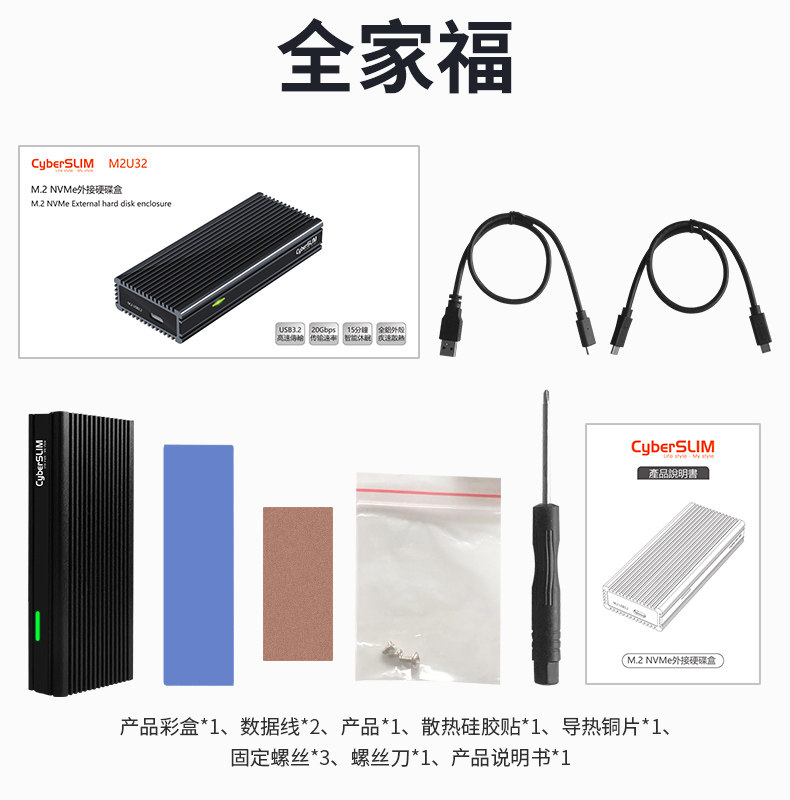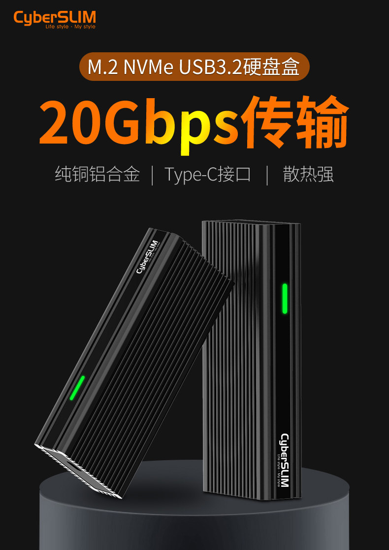 CyberSLIM M.2 NVME Hard Disk Box Type-C USB3.2 20G Высокоскоростная сплошная SSD Внешняя коробка M2 SSD