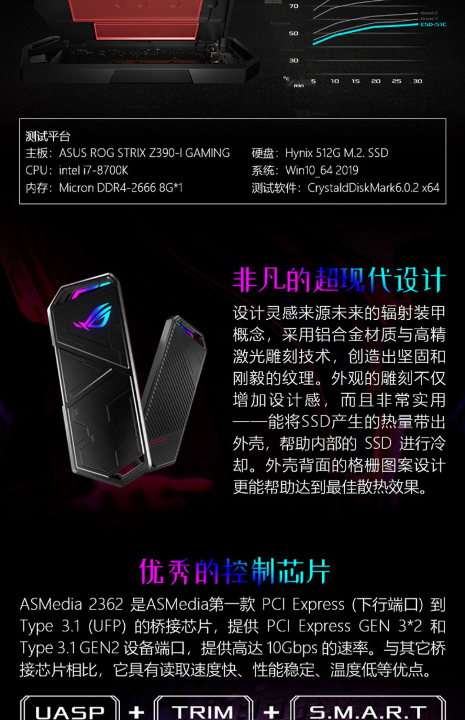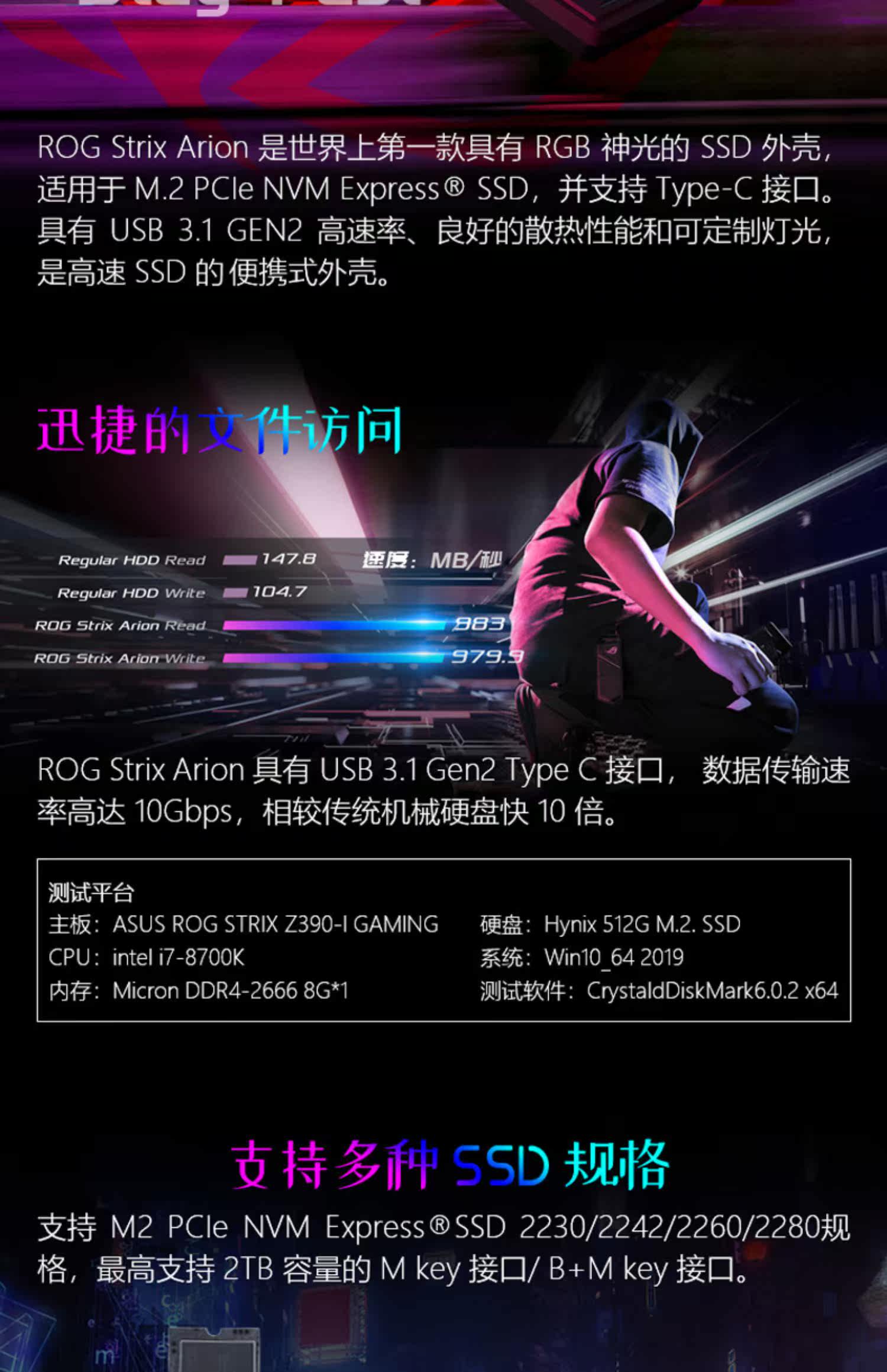 ROG Strix Ariion Phantom Hard Disk Box USB3.1 M.2 твердое твердое жесткое диск перемещение внешней коробки портативна