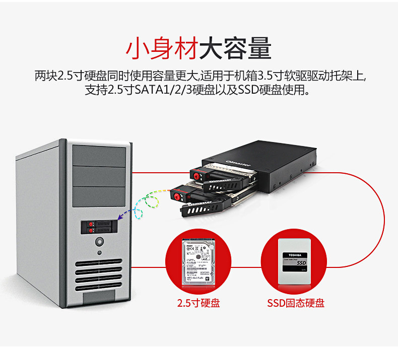 Четырех -летящий магазин -тип шасси с двойной диск мягкой приводной коробки с жесткой дисковой коробкой 2.5 -INCH Serial Hard Disk Box Suld -в мягкой клетке для привода