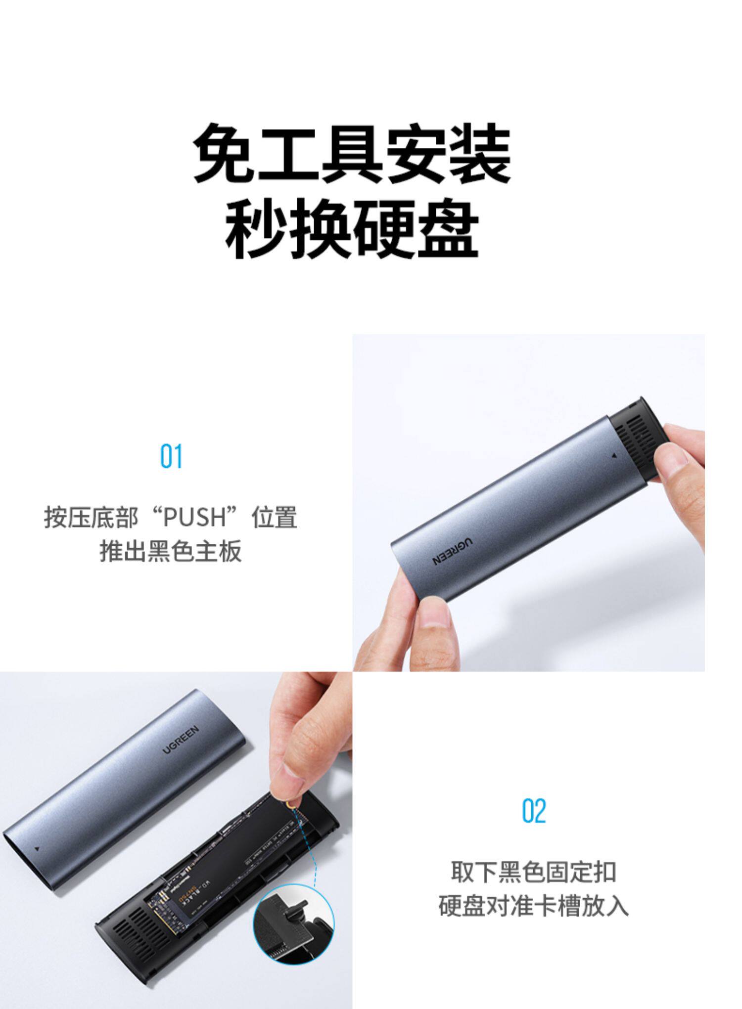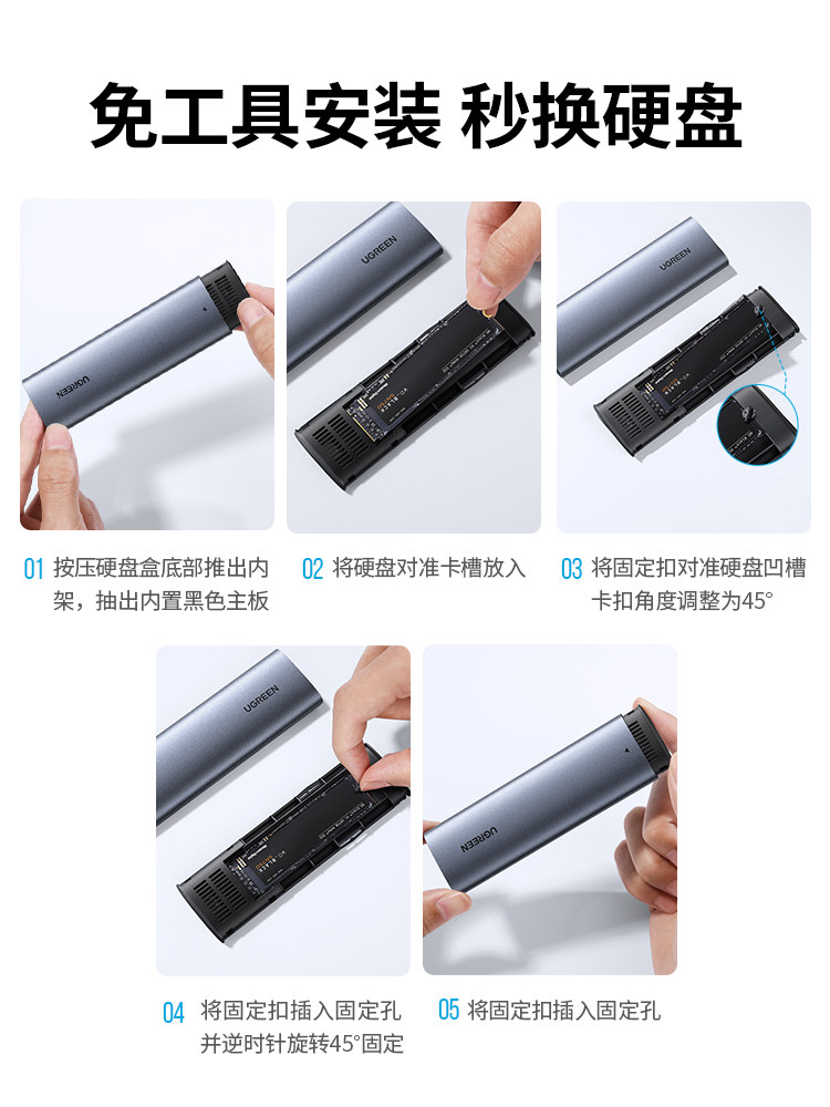- Интерфейс SATA [NGFF Protocol-5 Гбит / с] с USB-кабелем данных