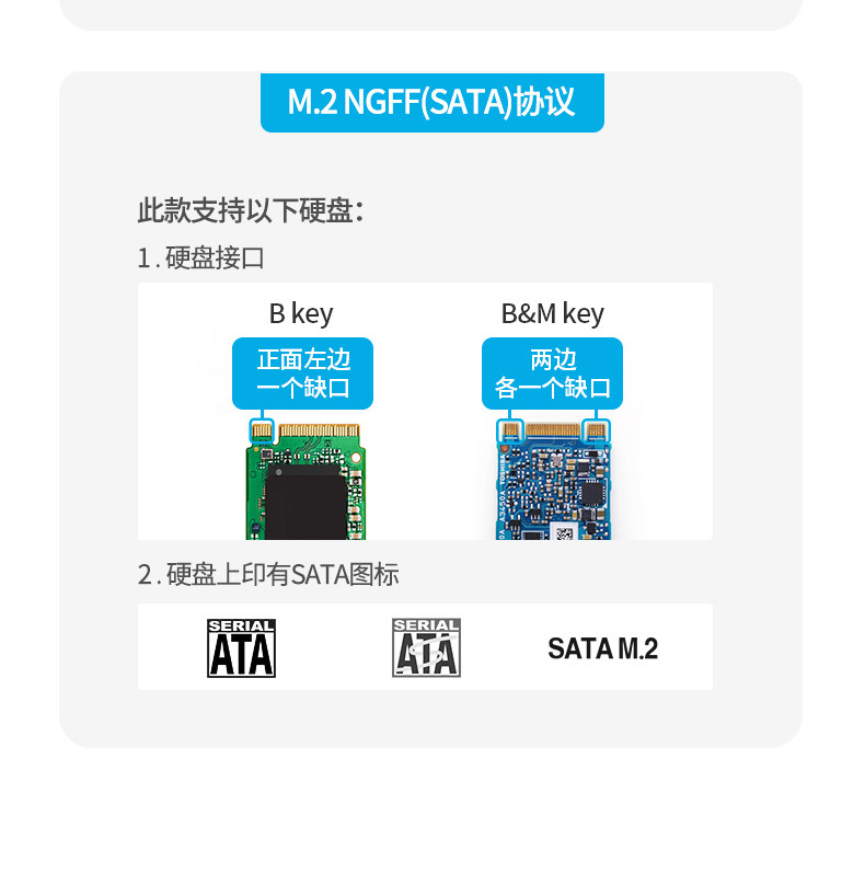 - Интерфейс SATA [модель слайда NGFF-Protocol-5 Гбит / с] с USB-кабелем данных