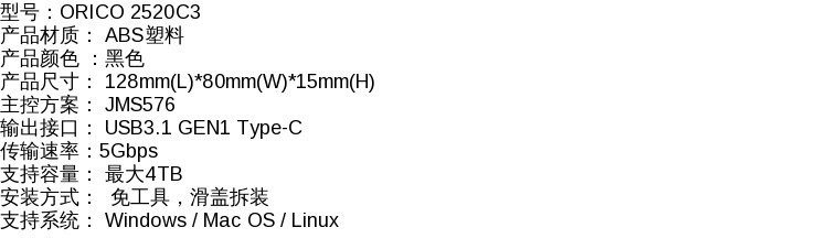 Orico 2,5-дюймовый тип C до USB3.0 Мобильный жесткий диск HHD/SSD Solid-State Hard Disk Box 2520C3