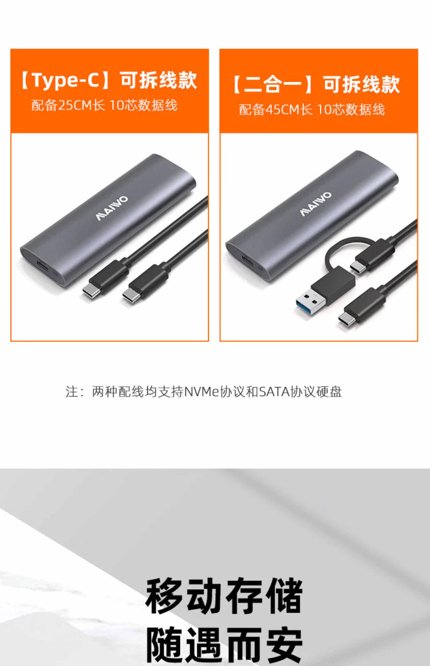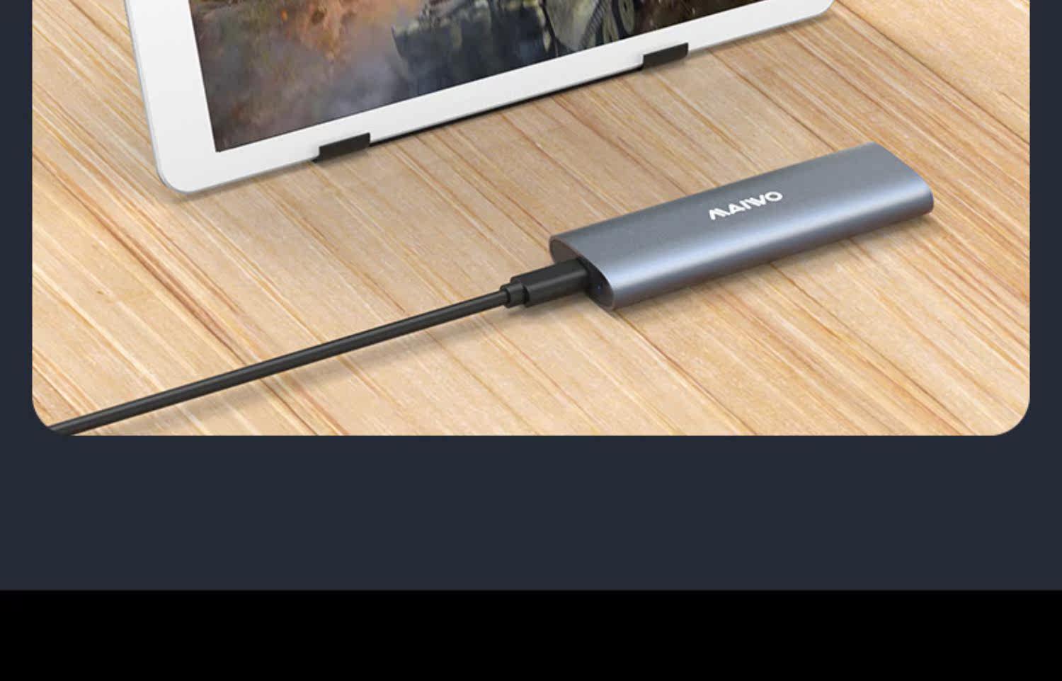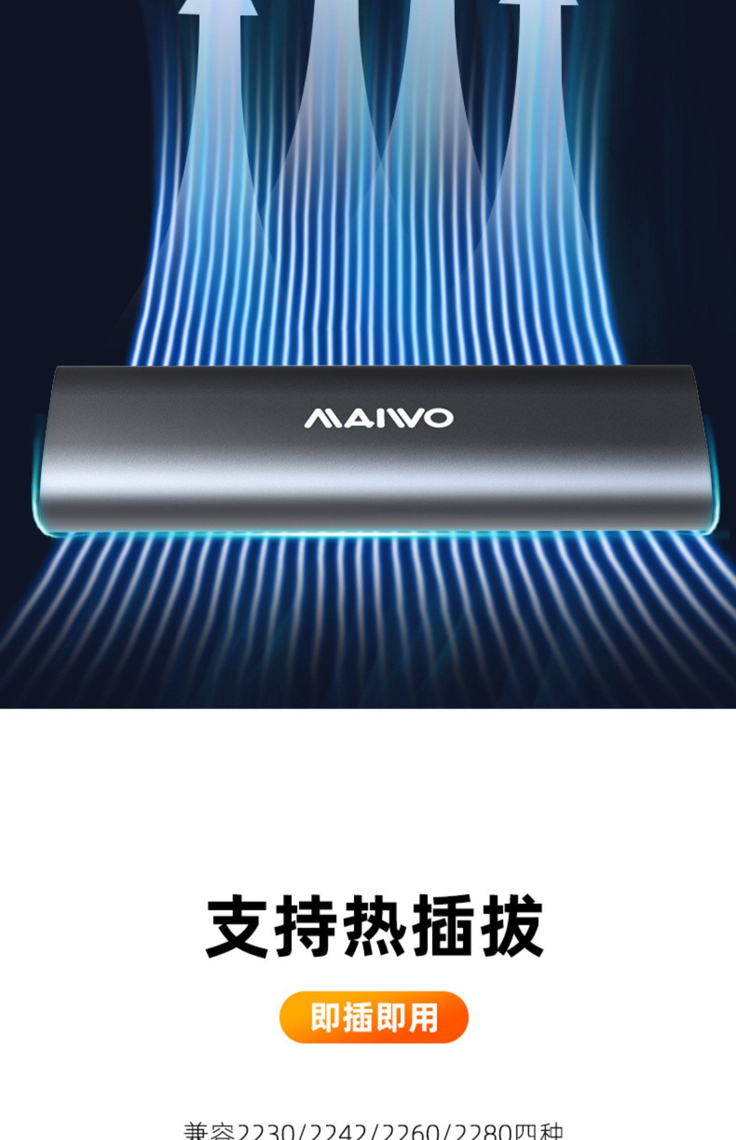 Maiwo твердотельный жесткий диск коробка M.2 Двойной протокол NVME/SATA Внешнее ящик Type-C Алюминиевый сплав Читать K1689