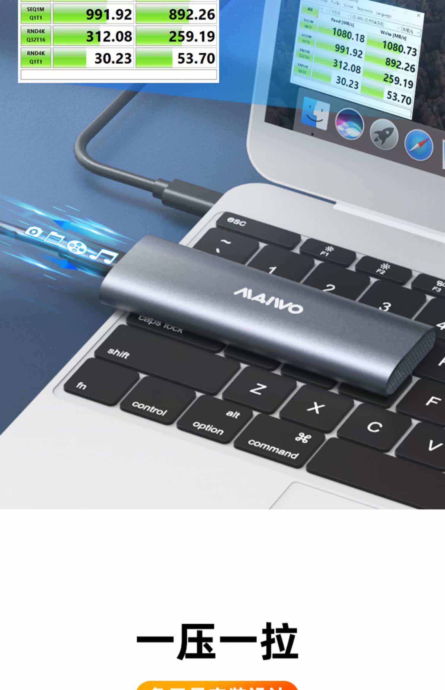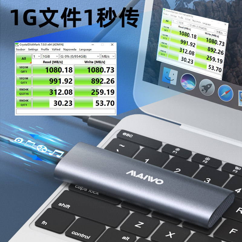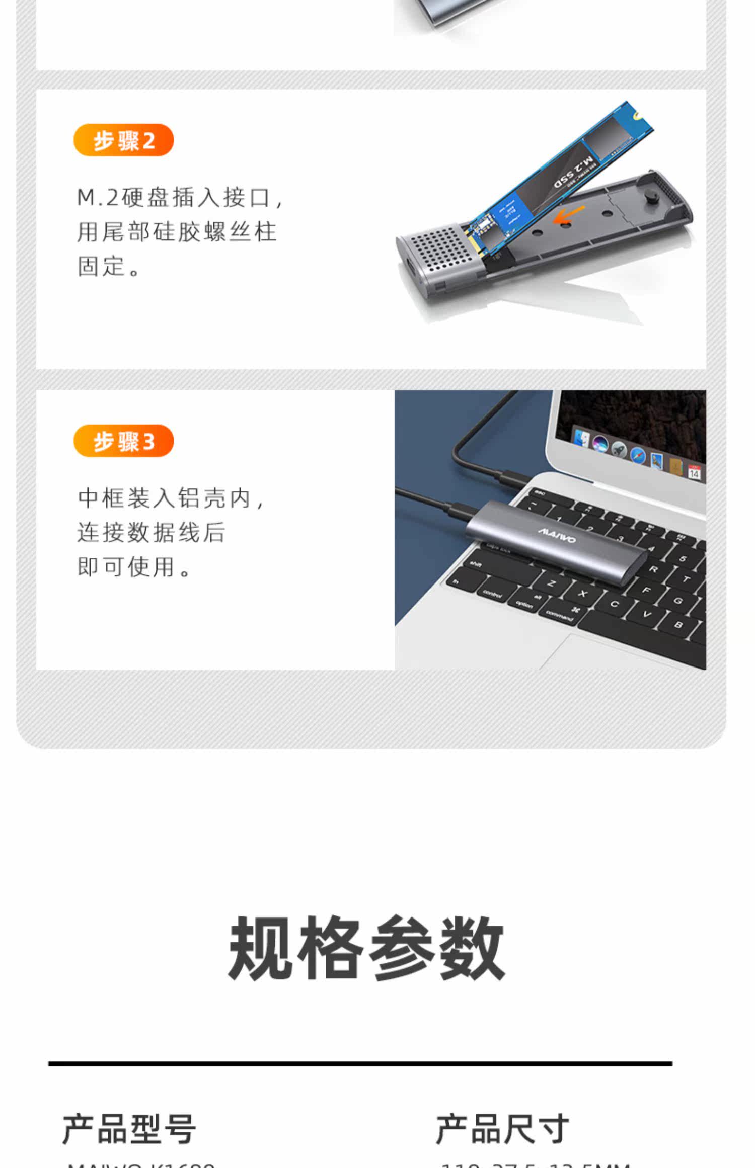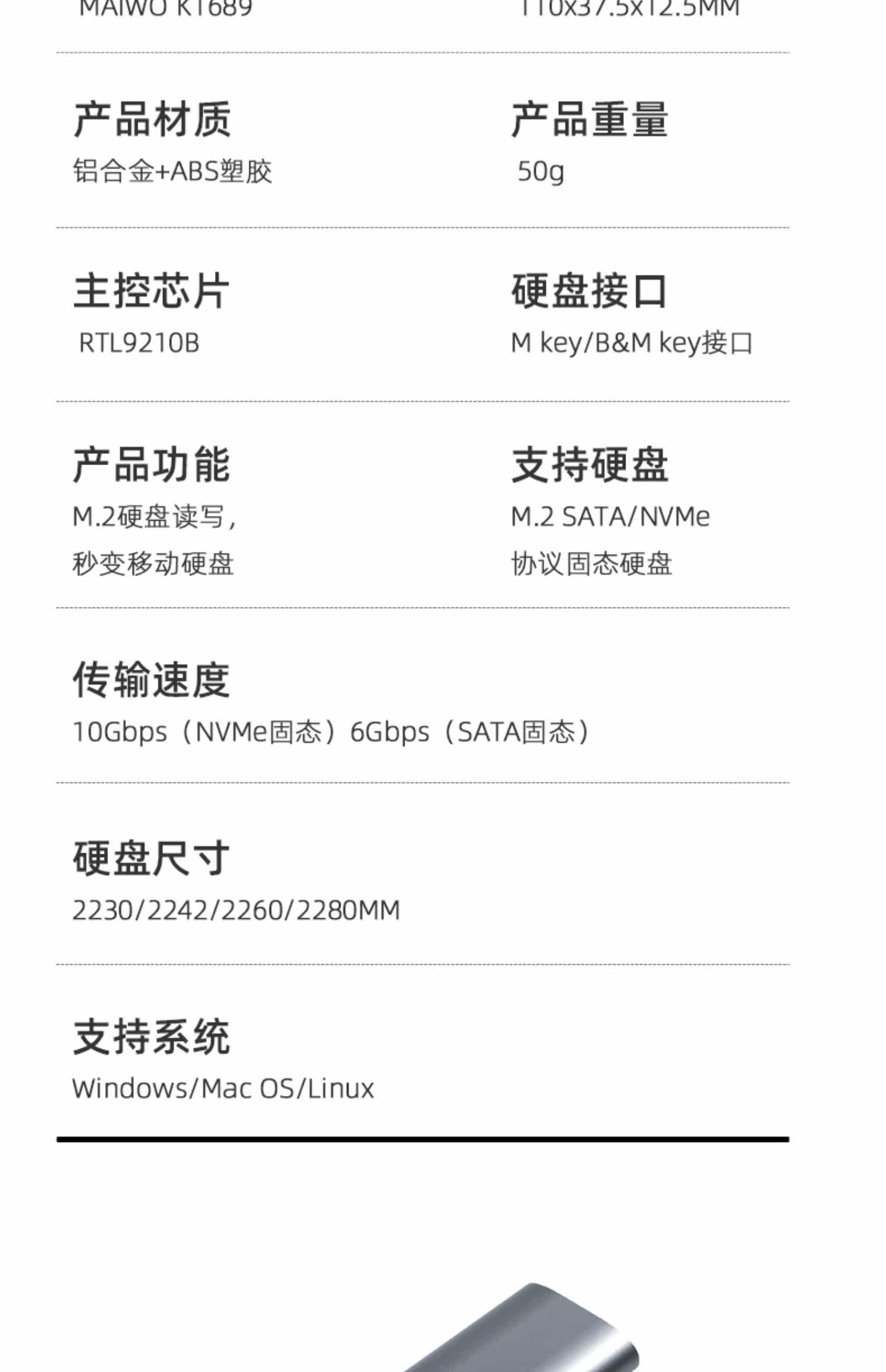 Maiwo твердотельный жесткий диск коробка M.2 Двойной протокол NVME/SATA Внешнее ящик Type-C Алюминиевый сплав Читать K1689