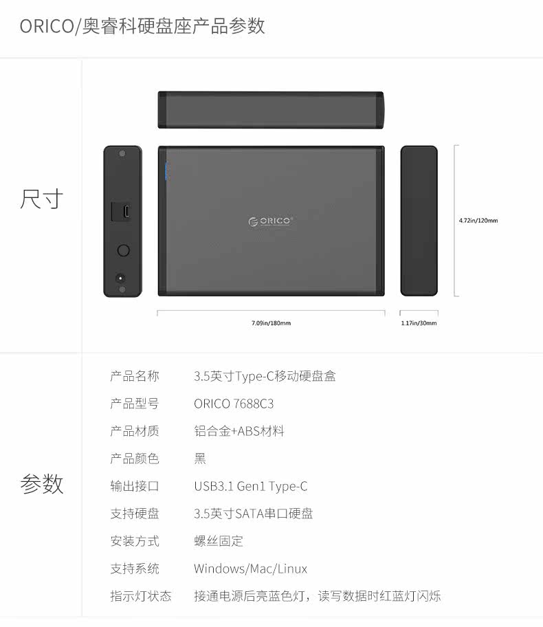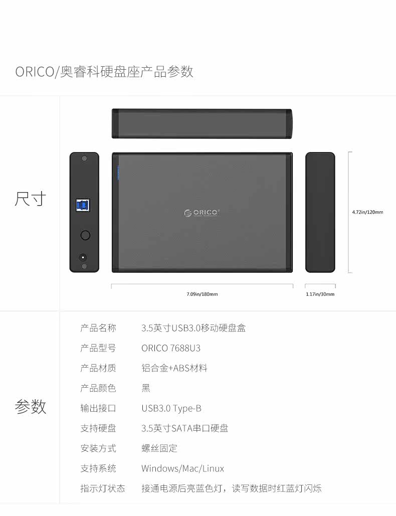 Aori Hard Disk Box 3.5 -Inch Внешняя коробка USB3.0 Универсальное механическое изменение Мобильное внешнее считывание SATA