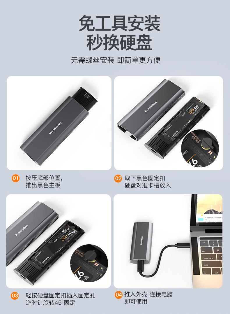 Lan Shuo M.2 NVME /SATA Двойной протокол без винтовой оболочки жесткая коробка диска