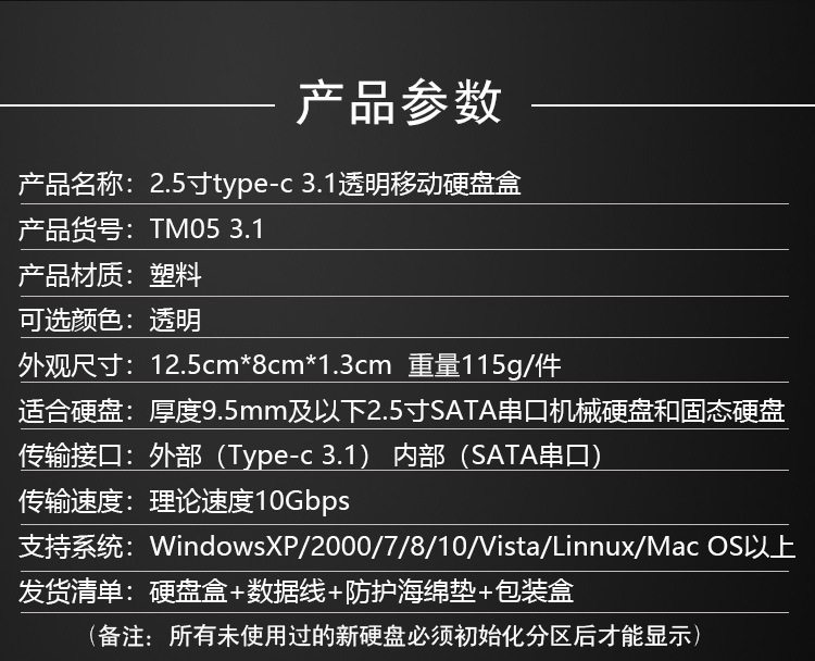 USB 3.1 Type-C прозрачная коробка Hard Disk Box Notebook 2,5-дюймовый SSD Solid Mechanical Mechanic Mobile Hard Disk Box
