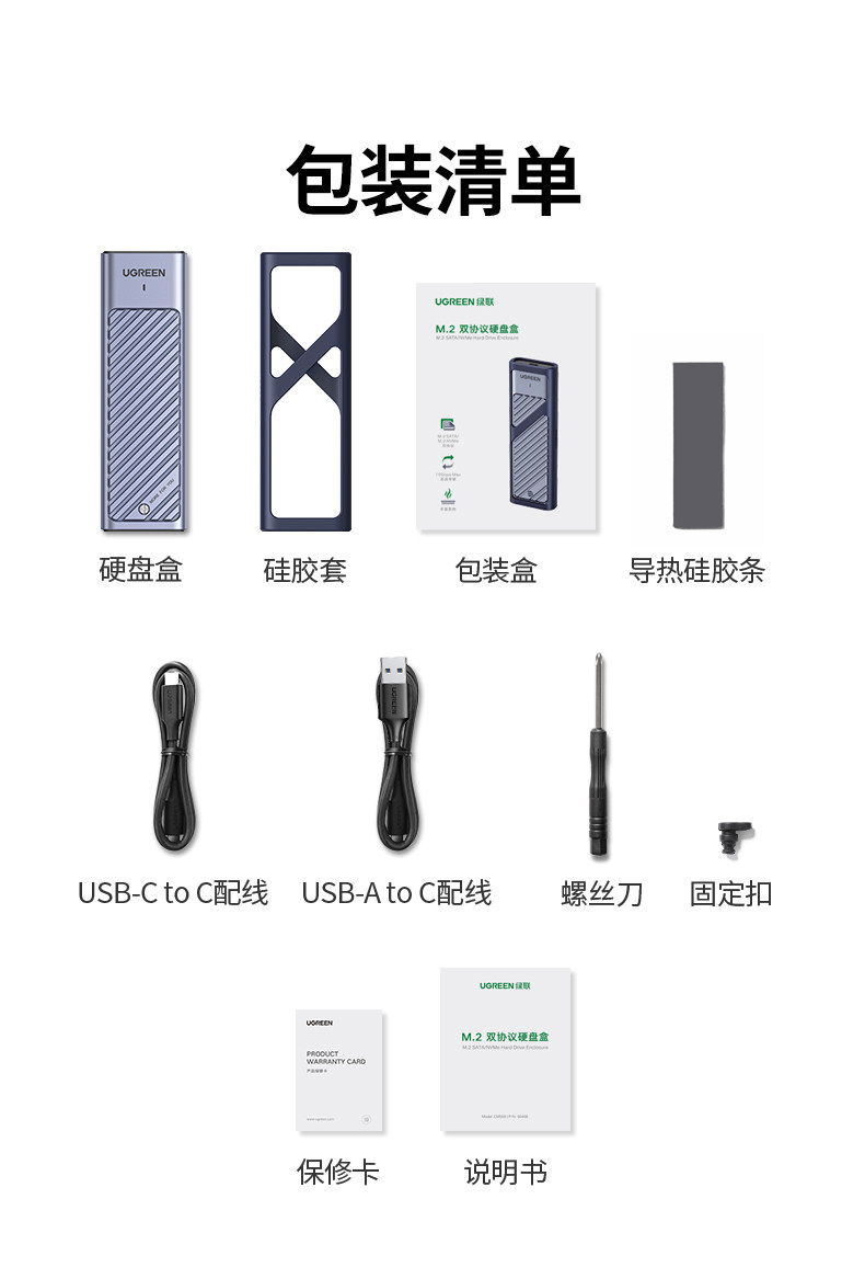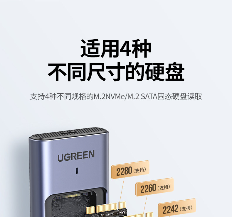 绿联 M.2 Сплошное -Государственное жесткое дисковое ящик NVME/SATA Двойной протокол Мобильный ноутбук SSD Внешняя оболочка M2 Lightning 3