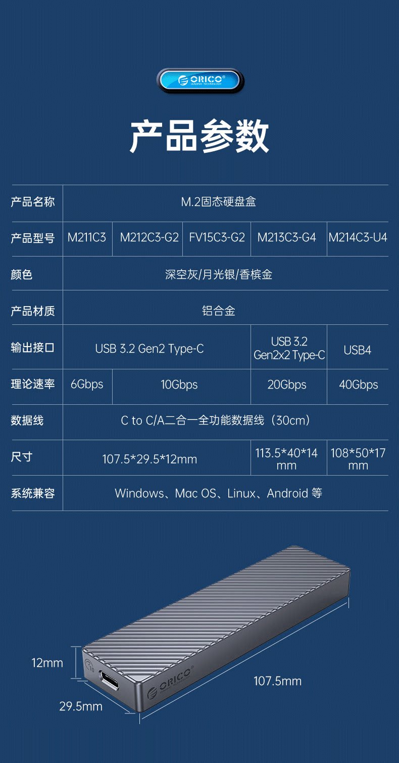 Orico/New Oreo M.2 Mobile Hard Disk Box SATA/NVME Двойной протокол ноутбук USB4