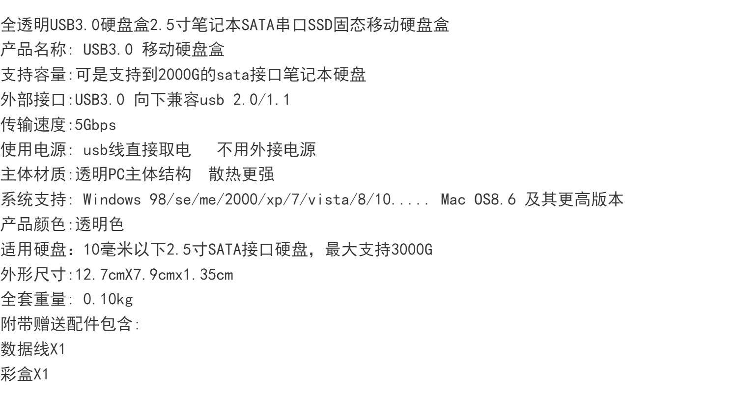 USB3.0 Прозрачная мобильная жесткая коробка 2.5 -Inch Notebook Hard Disk Box Sata Serial Hard Disk Solid -state SSD