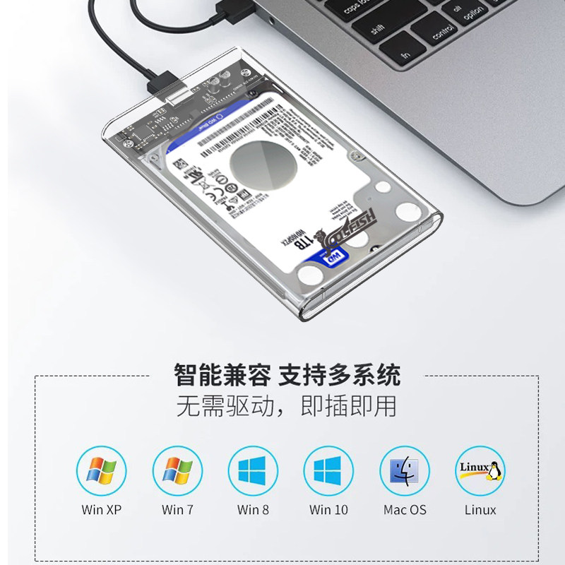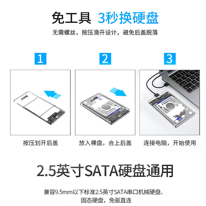 Мобильный жесткий диск коробка 2.5 -Inch SATA вращение USB -ноутбук разборка сплошной механический считыватель Прозрачный внешний ящик