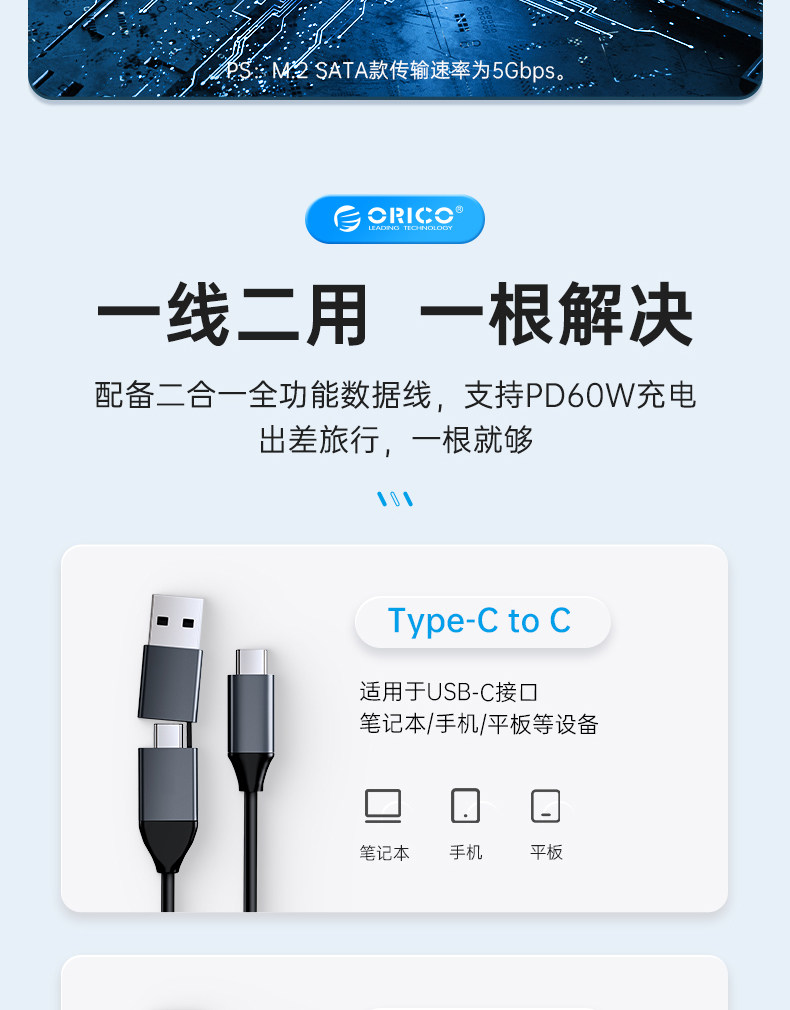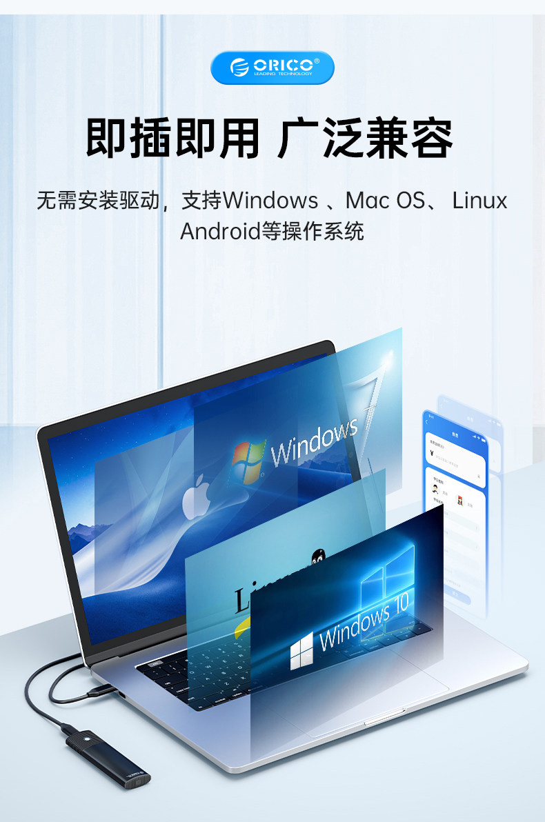 Orico M.2nvme Solid -State Mobile Hard Disk Box USB3.1 Компьютерный мобильный телефон Typec3.1 Внешнее SSD расширение