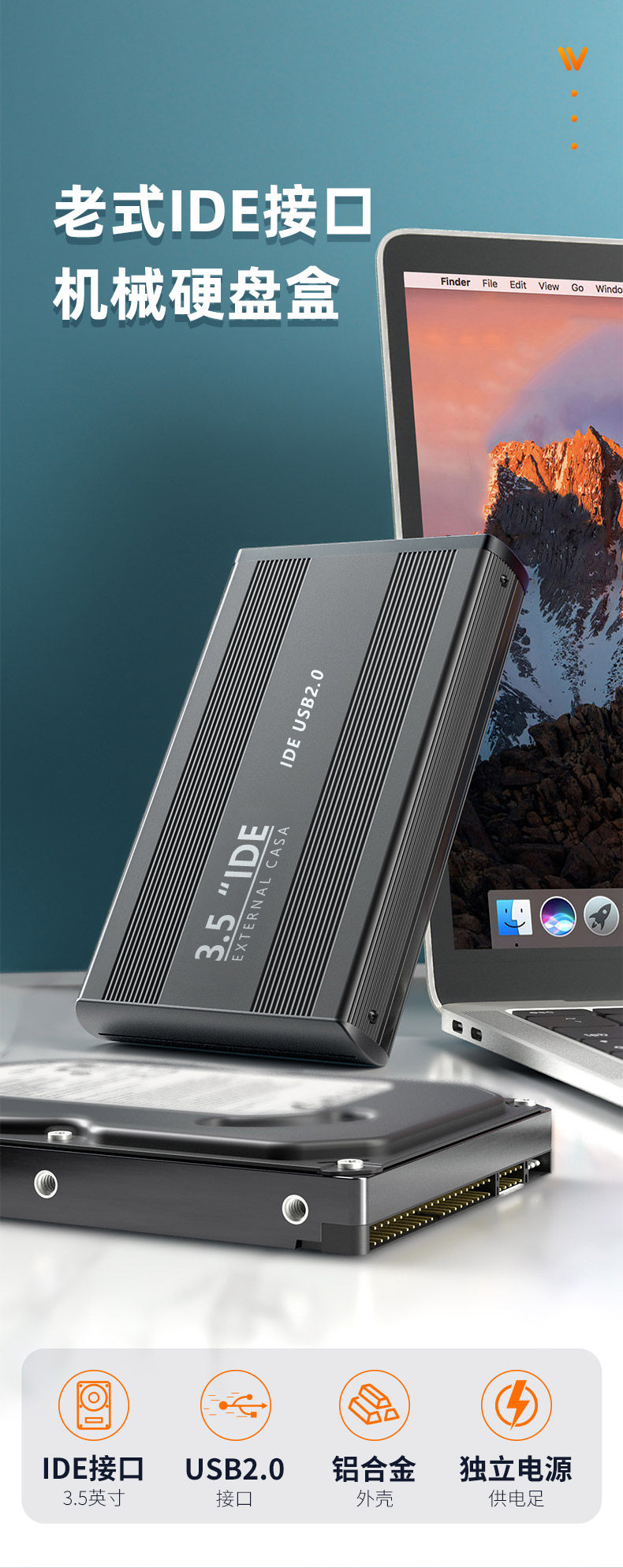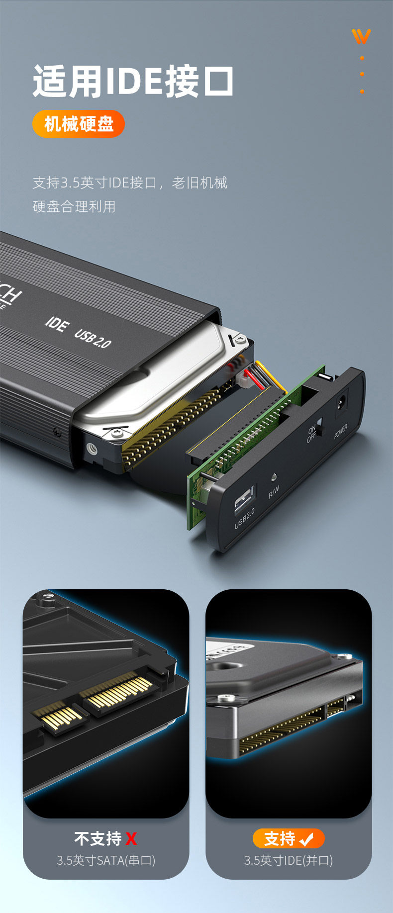 IDE Mobile Hard Drive Case 3,5-дюймовый 39-контактный параллельный порт на рабочем столе USB-столец Внешний считыватель.