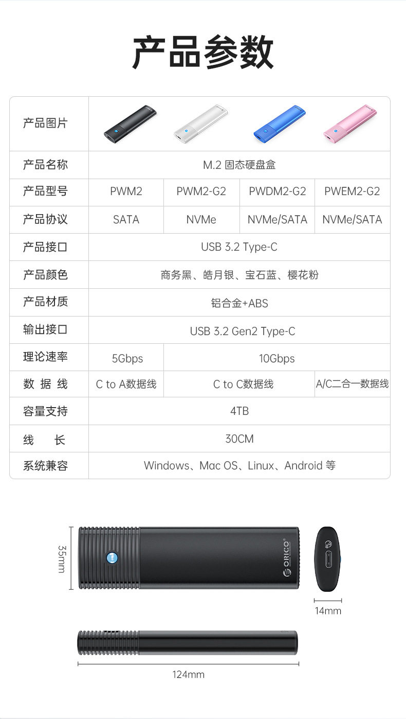 ORICO/ORRE M2 SOLID -State Hard Disk Box Mobile NVME Изменение внешнего SSD на Typec Внешний считыватель