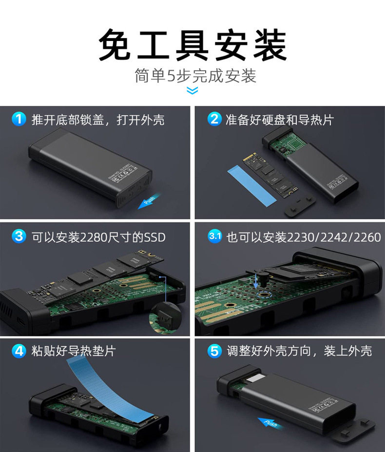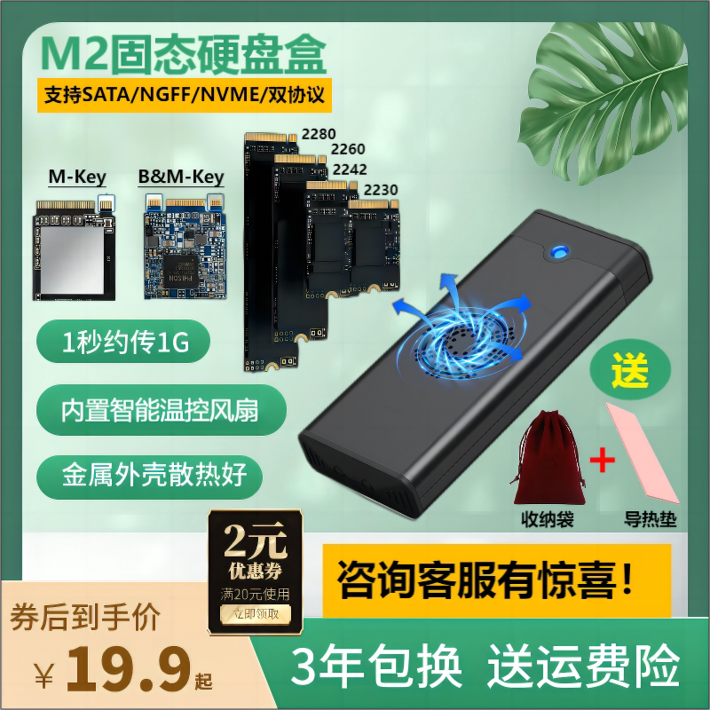 Fan NVME ноутбук MSATA Computer 2230 Внешний мобильный мобильный жесткий диск M.2 M2 Universal USB3 0