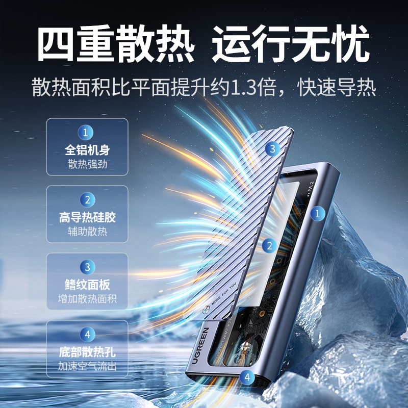 绿联 M2 Solid -state Hard Disk Box NVME/SATA Dual Protocol Typec Внешний USB3.2 Mobile M.2 Расширенный док
