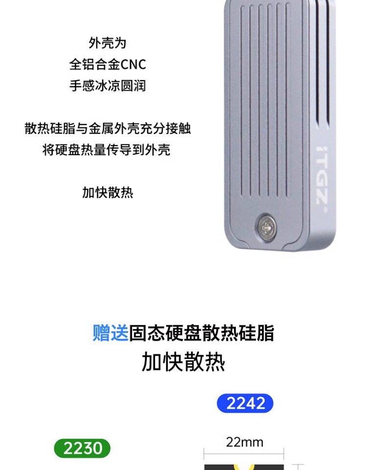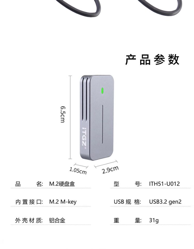ITGZ M.2 Mobile Hard Disk Box USB3.2 Применимо 2230/2242 Технические характеристики твердотельное состояние 1000 МБ/с алюминиевый сплав
