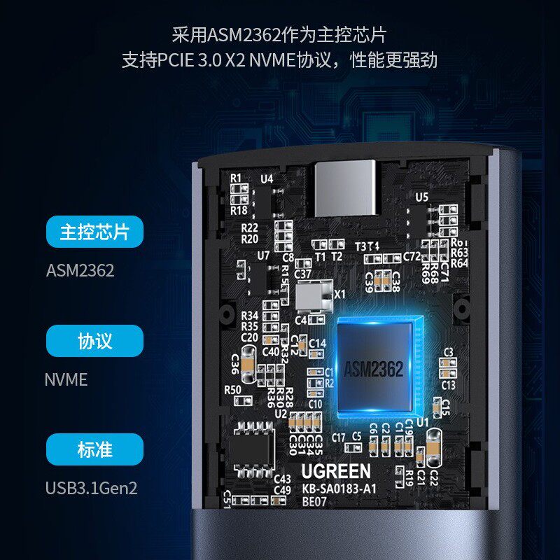绿联 M.2 Solid -state Hard Disk Box nvme для типа внешнего SATA Читать мобильный m2 General SSD Lightning 3