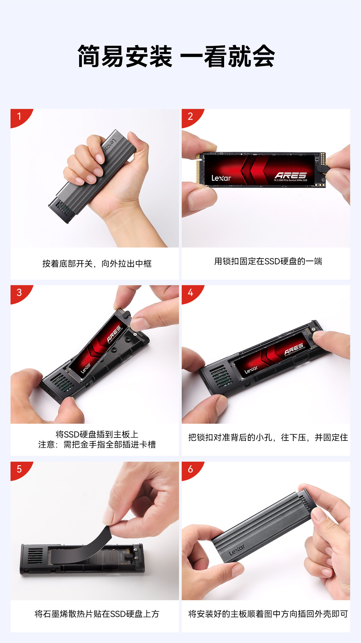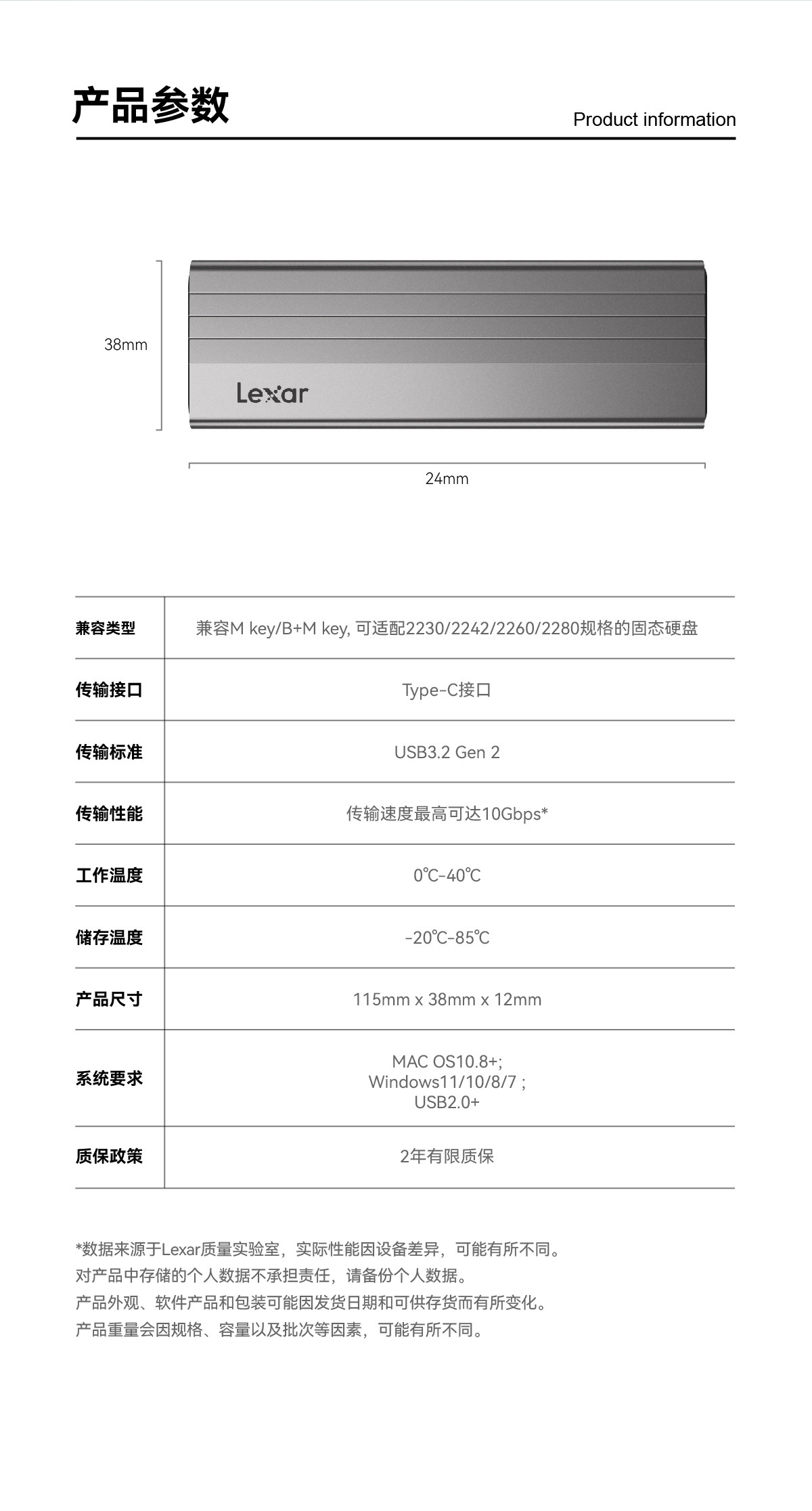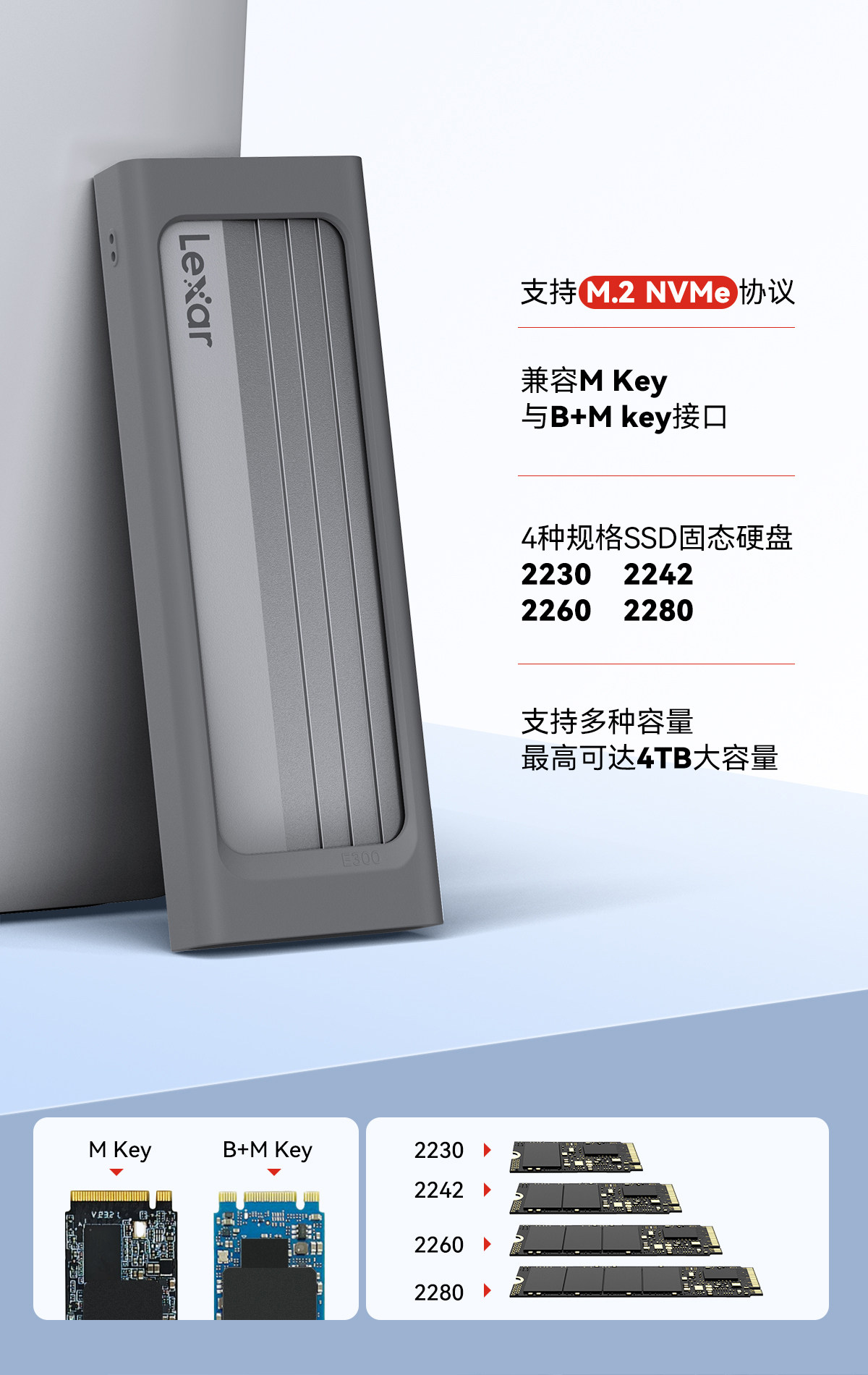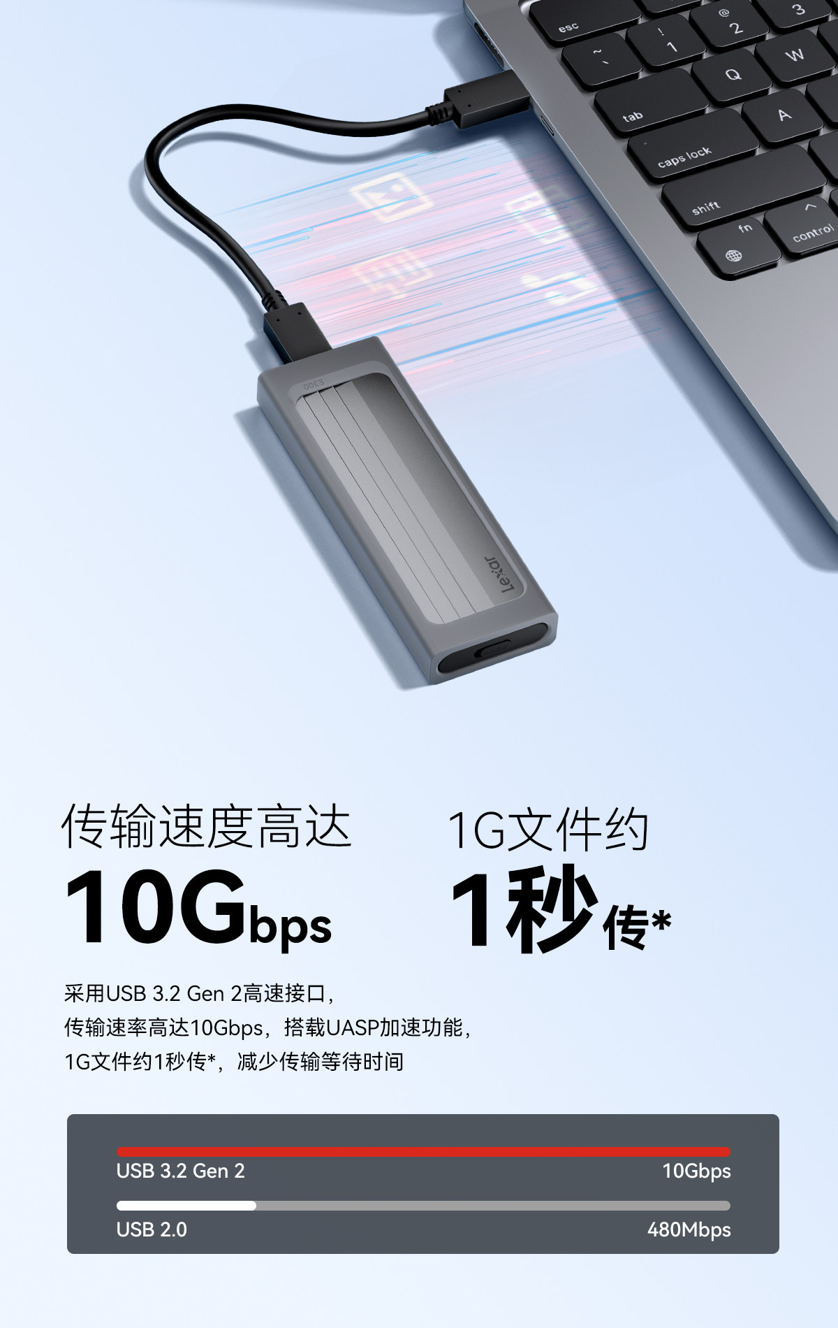 Laxer Lecisha E300 M.2 SSD Solid -State Mobile Hard Disk Box M.2 NVME Протокол 10 Гбит / с трансмиссии