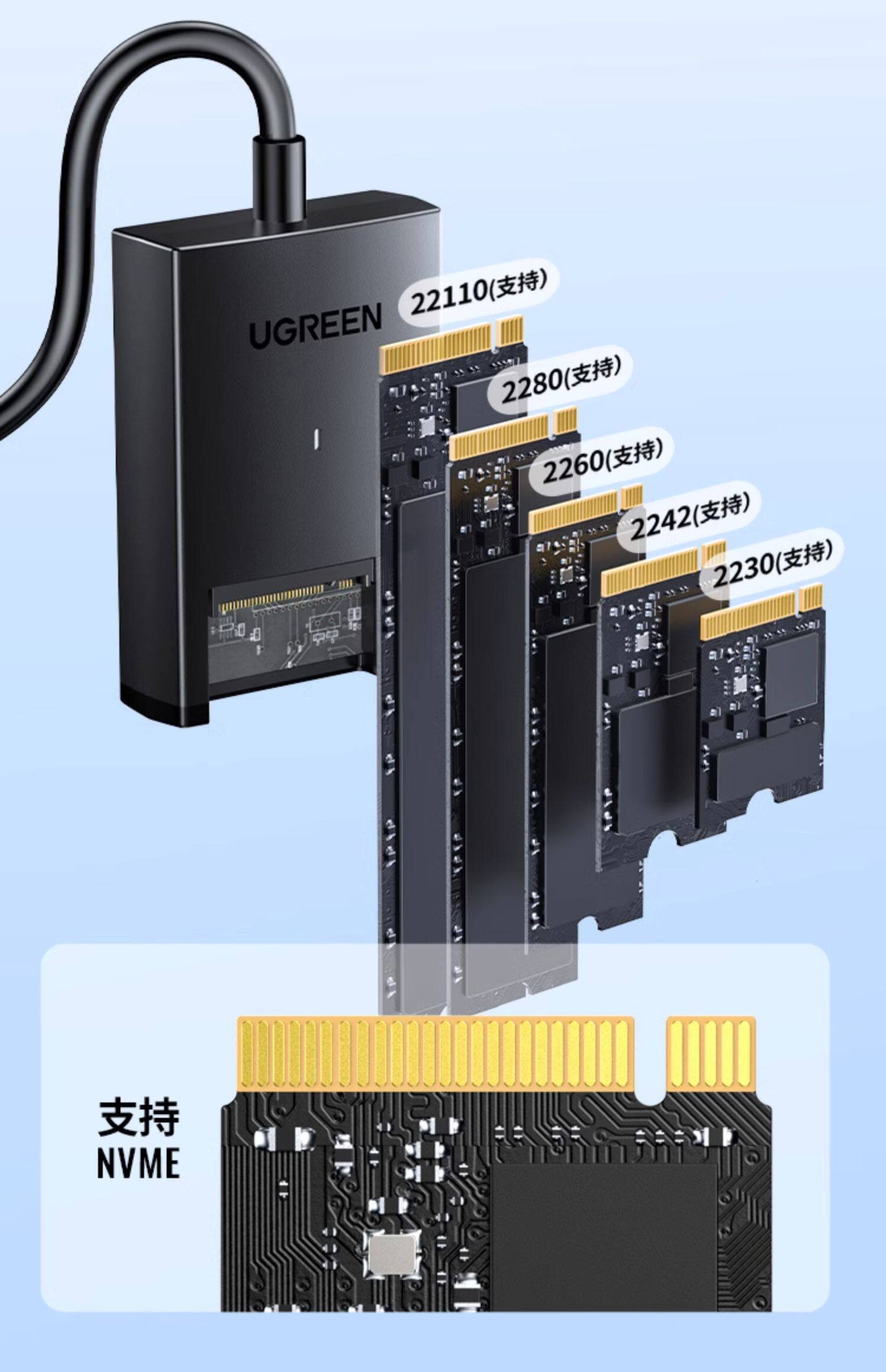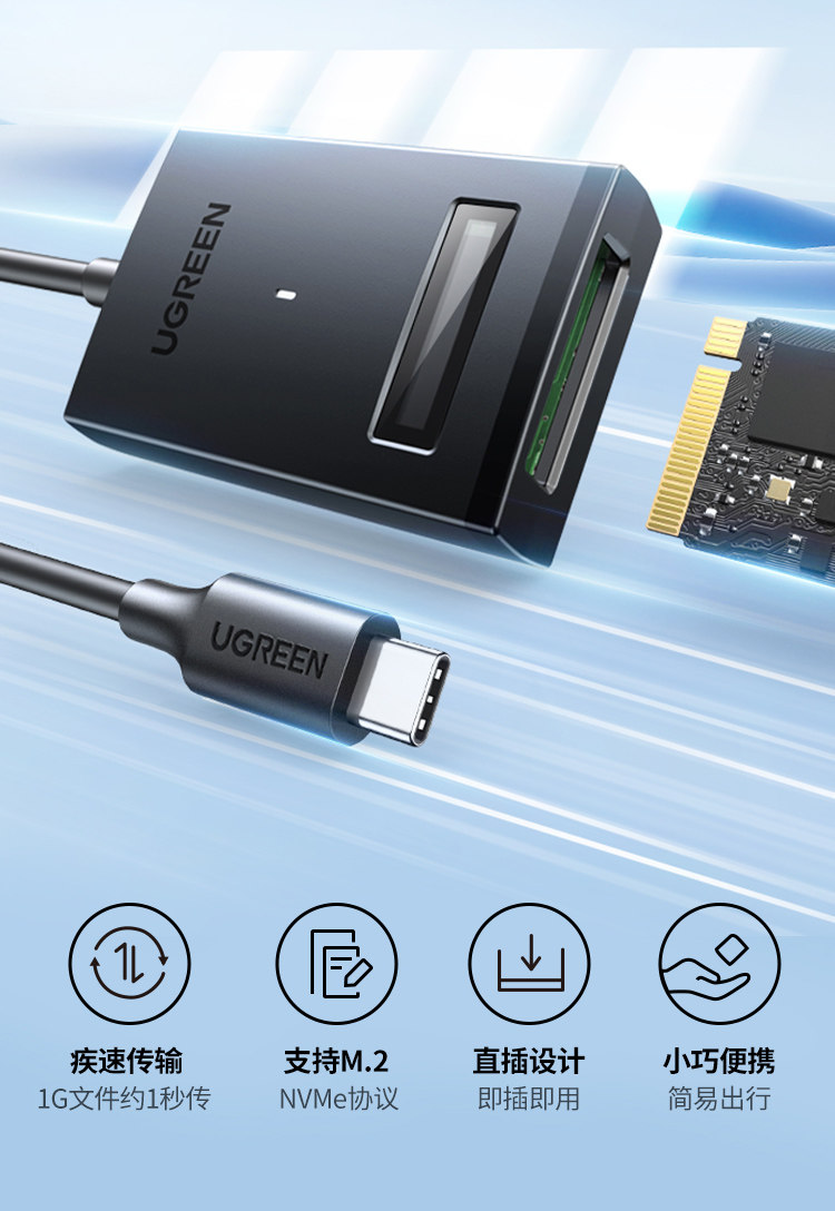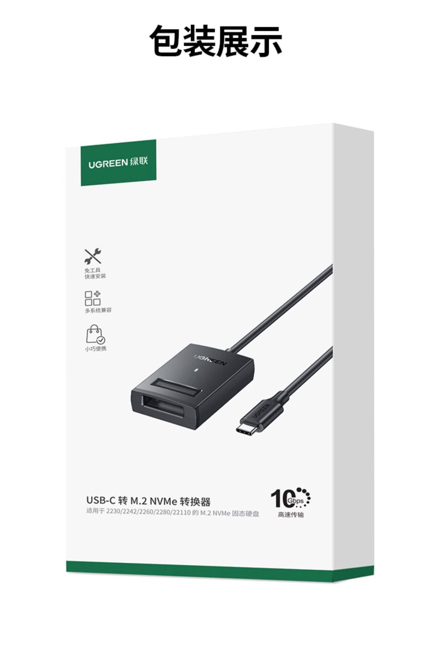 绿联 M.2 Мобильный жесткий диск Leasy Drive Line NVME Протокол компьютер тип-C3.2 Внешний твердотельный жесткий диск M2 чтение