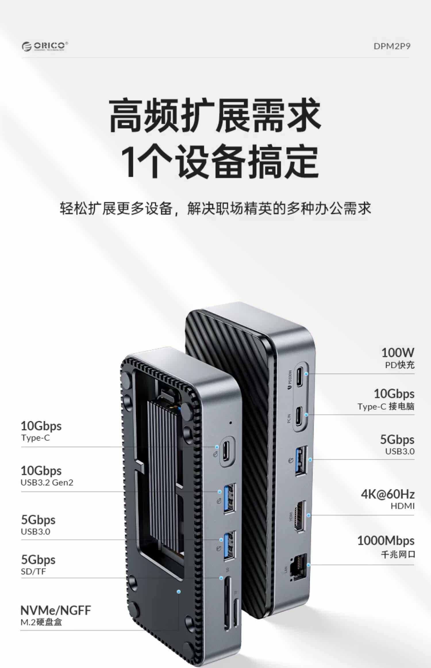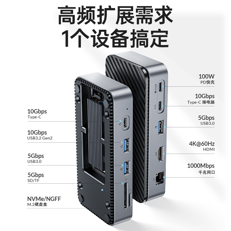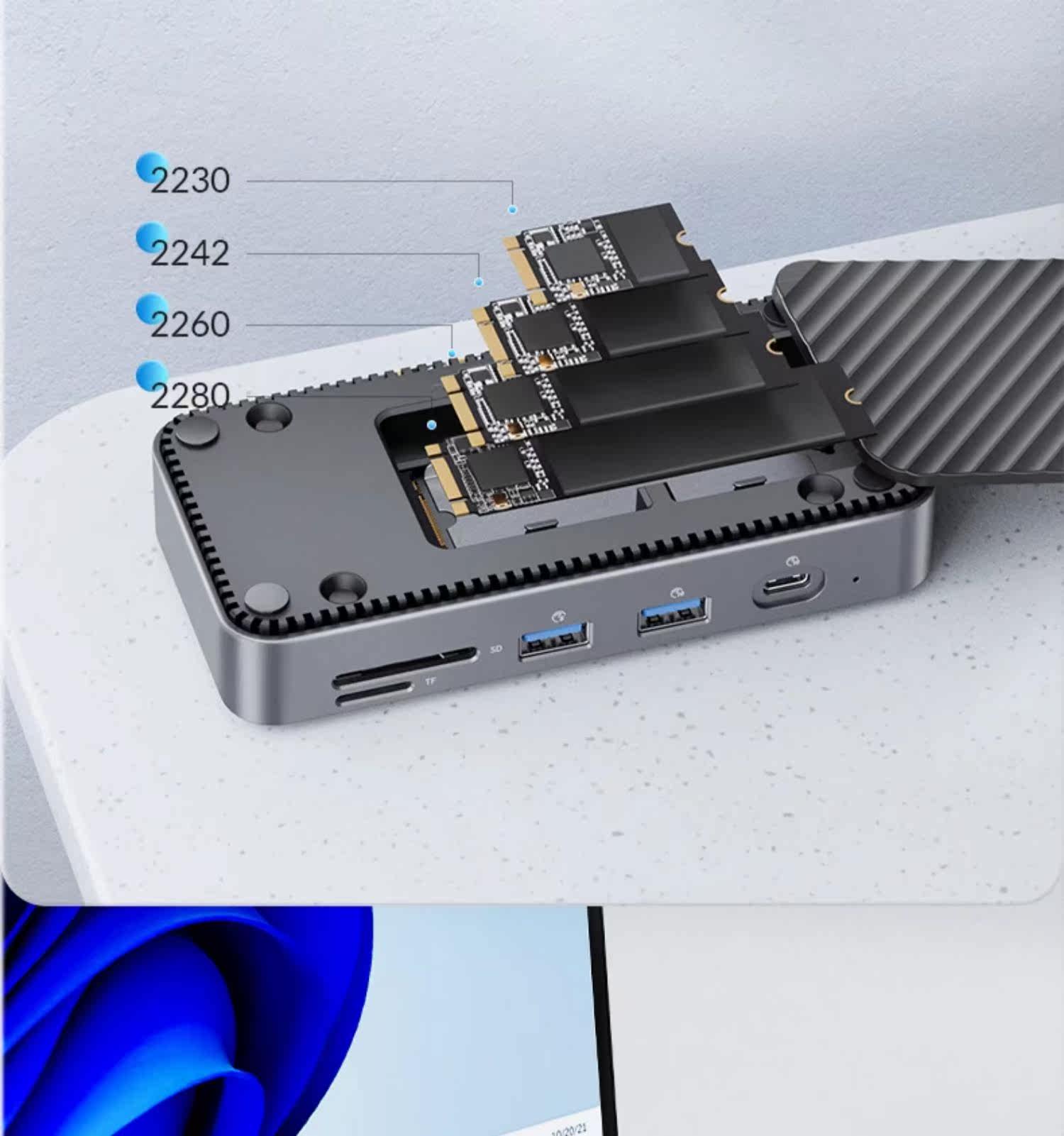 Aori M2 Solid -State Hard Drip Box Расширение дока мобильная внешняя nvme жесткий диск с помощью считывателя док -док -считывания Typec3.2