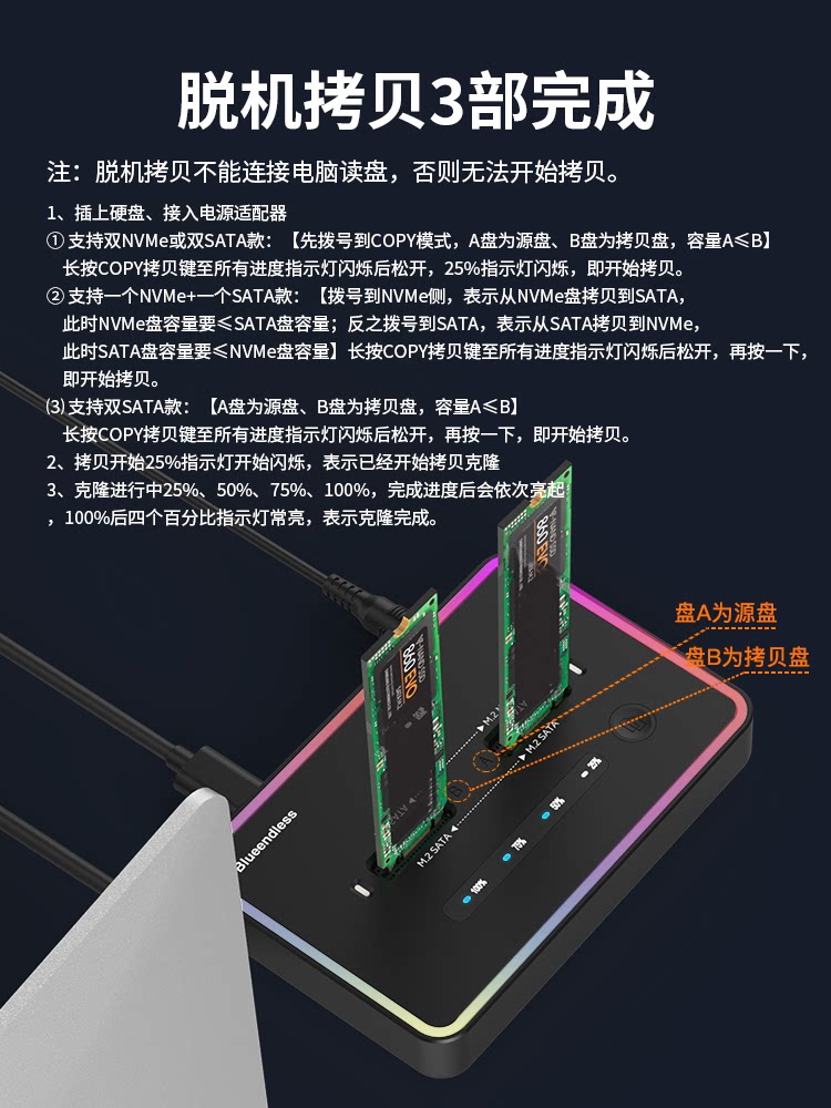M.2 двойной протокол nvme/sata копировальный аппарат для жесткого диска m2 твердотельный накопитель 20 ГБ копировальный клон жесткий диск