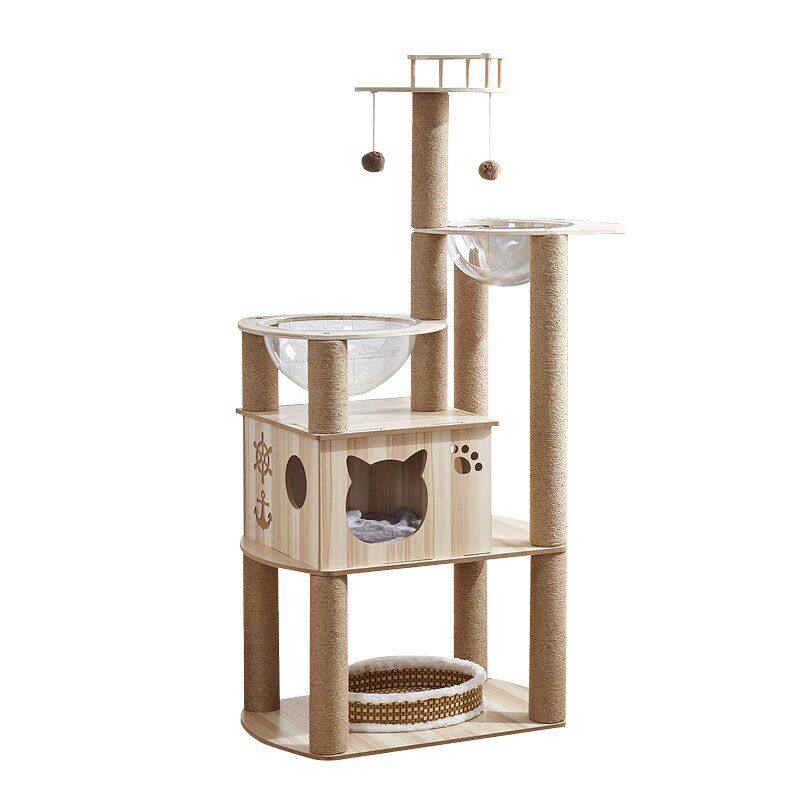 Космический деревянный спортивный комплекс из натурального дерева, многослойная вилла, кот