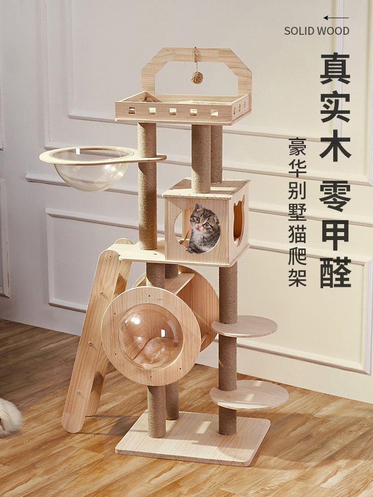 Кошачья стойка для кошачья кошачья кошачья дерево интегрированная крупная космическая салона Сплошная древесина, сплошная древесина, танчжу
