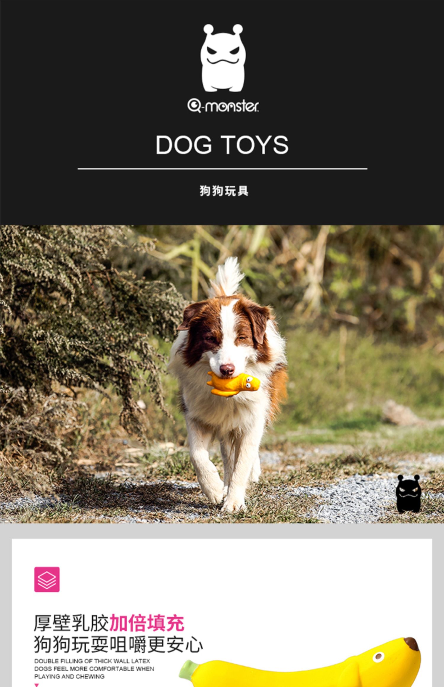 Qzee Latex Sound Dog Toy Qmonster Зуба для очистки банановые зубные зуб