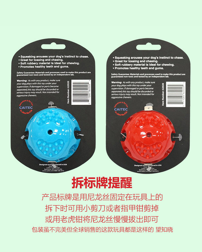 Дружелюбные предложения:ХотяCAITECСырье игрушек было очень сильным токсичным пластиком, но это не означает, что игрушка не может быть разрушена собакой. Напротив, если селезенка собаки и поведение укусов сильно разрушительны, тогда у него будет разрушительная сила Игрушка для игрушки. Она намного больше, чем обычные собаки, даже если это просто маленькая собака.так,Мы рекомендуем вам очень многоВ первый разCAITECКогда игрушка передается собаке, пожалуйста, наблюдайте за ней. Как только вы обнаружите, что у нее сильное разрушительное поведение с горьким укусом, пожалуйста, остановите его вовремяТаким образом, собаки поймут, что это поведение не любит владелец, тогда оно будет сходится.После периода обучения разрушительный укус собаки будет уменьшен, а срок службы игрушек будет значительно расширен.