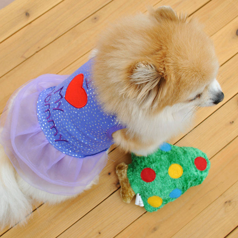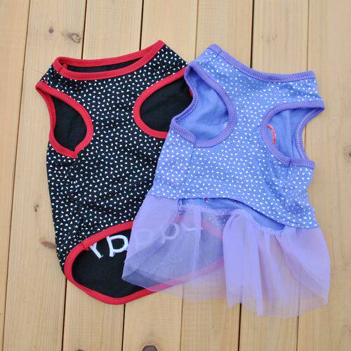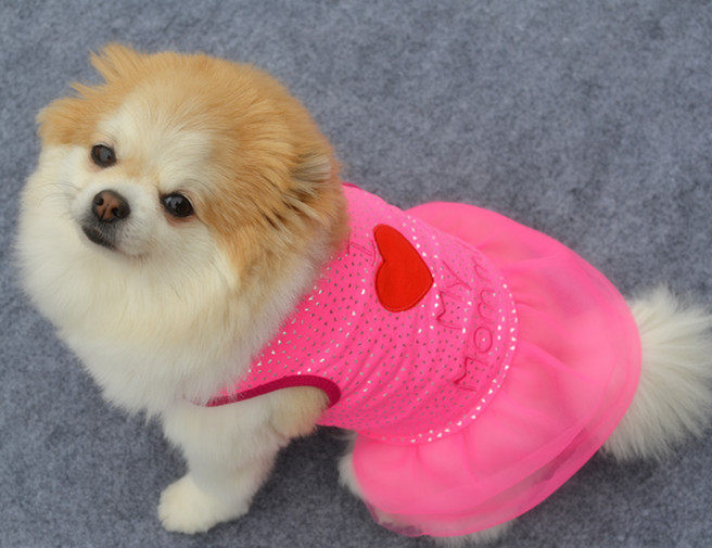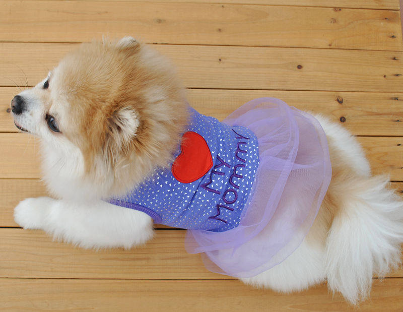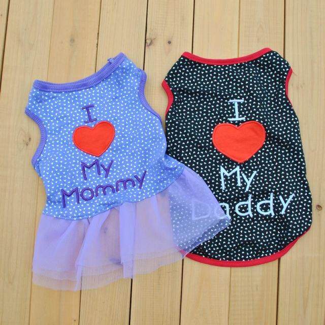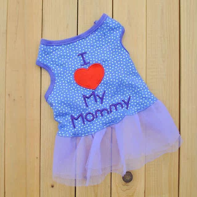 [Ding Ding] Pet Clothing Puppy Spring и осенняя пара платье с высокой тканей, вышивкой, Love Thate, Mother