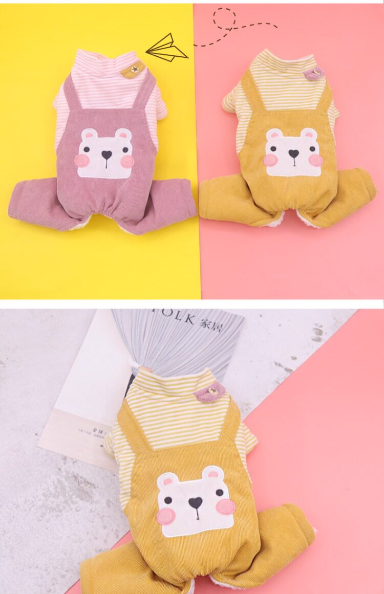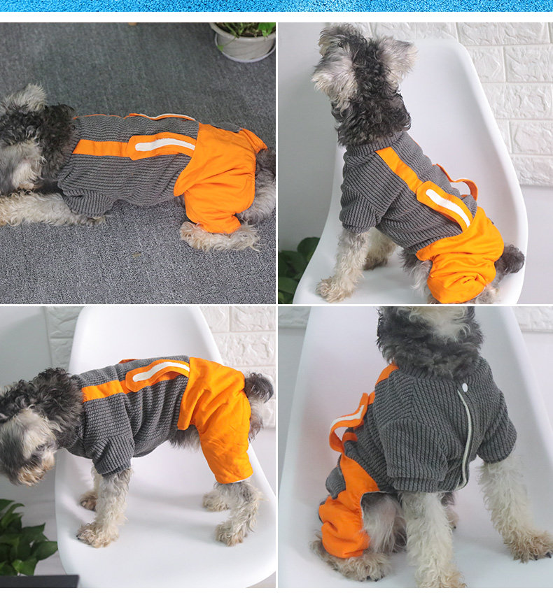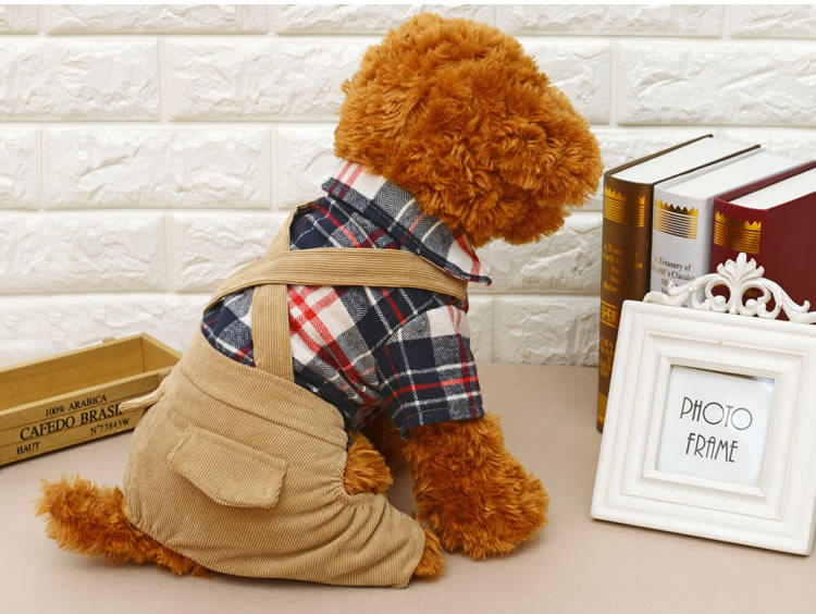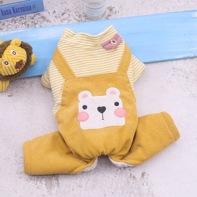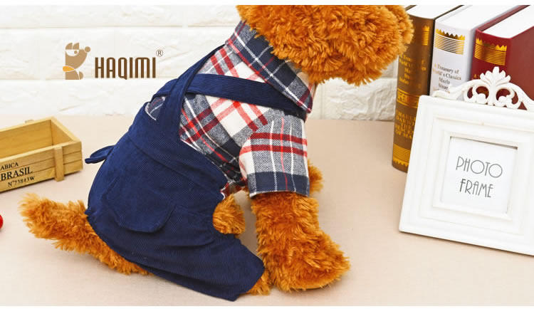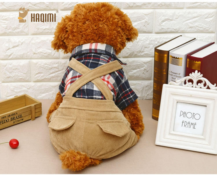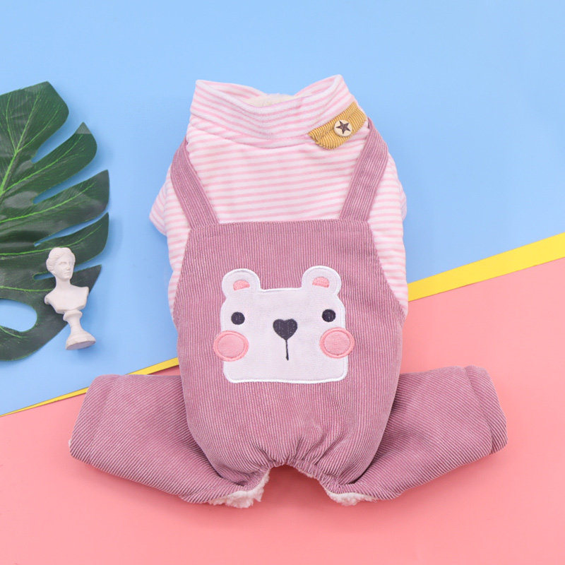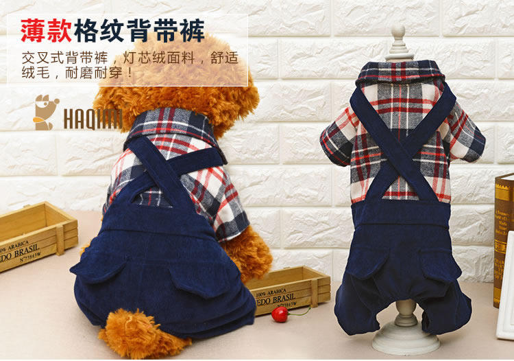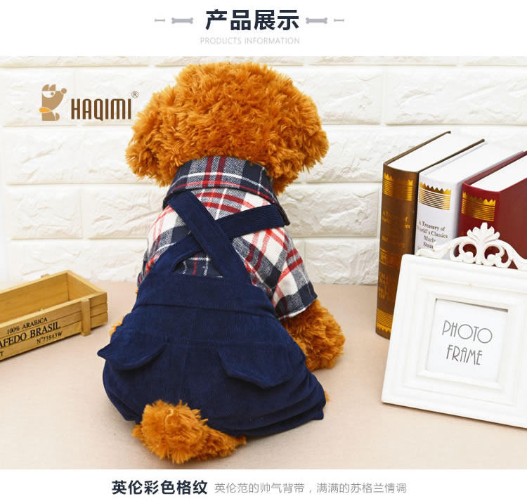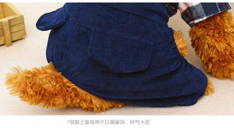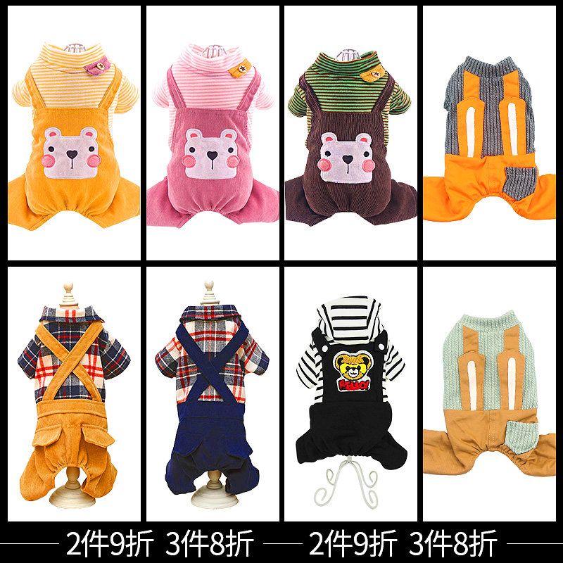 Домашние животные осень и зимняя джинсовая джинсовая ткань маленькие собаки плюшевые собаки, собаки в одежде, четыре фута, два месяца, брюки для ремней