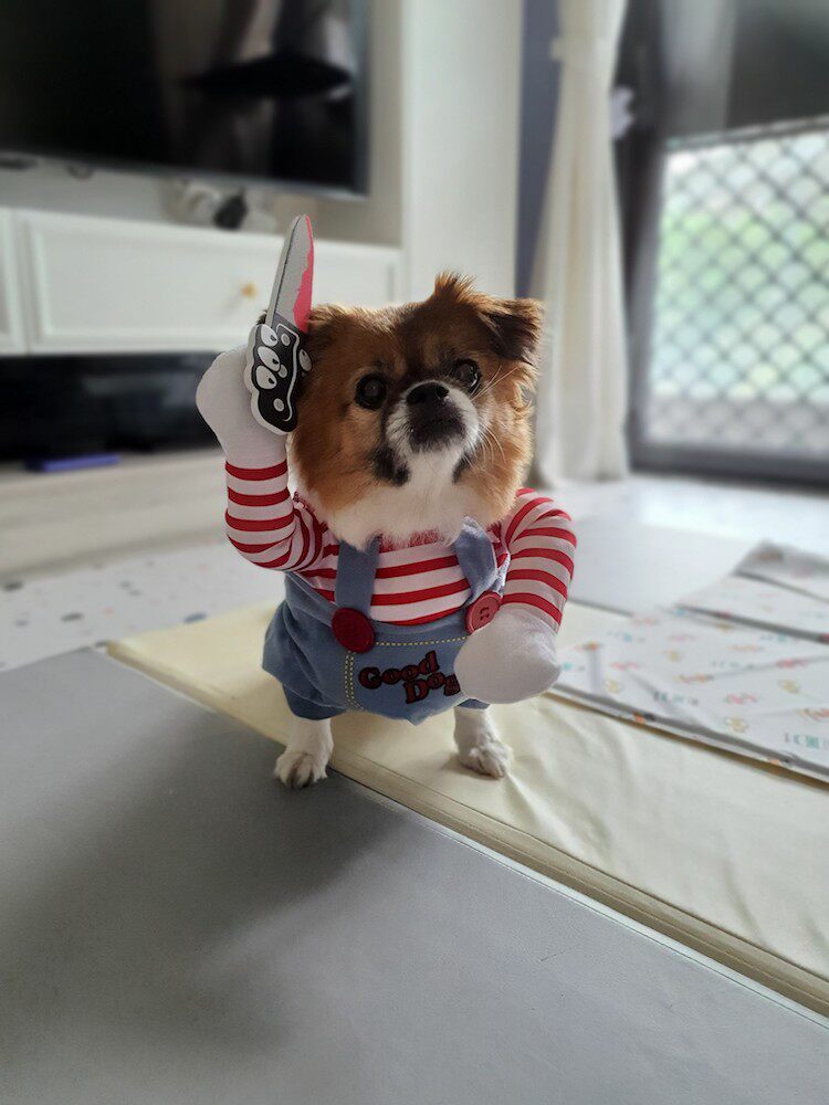 Douyin's в том же стиле, одежда для собак с ножом, забавный костюм с ножом, осенний тонкий плюшевый кот, забавный костюм, одежда для домашних животных